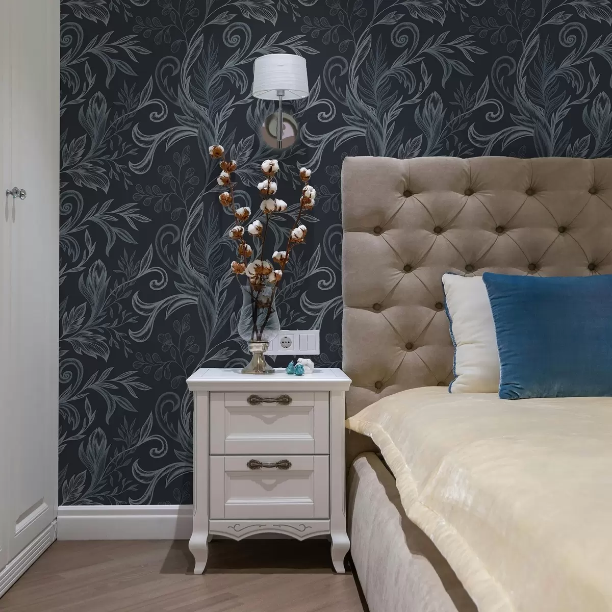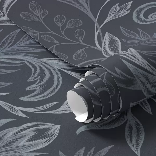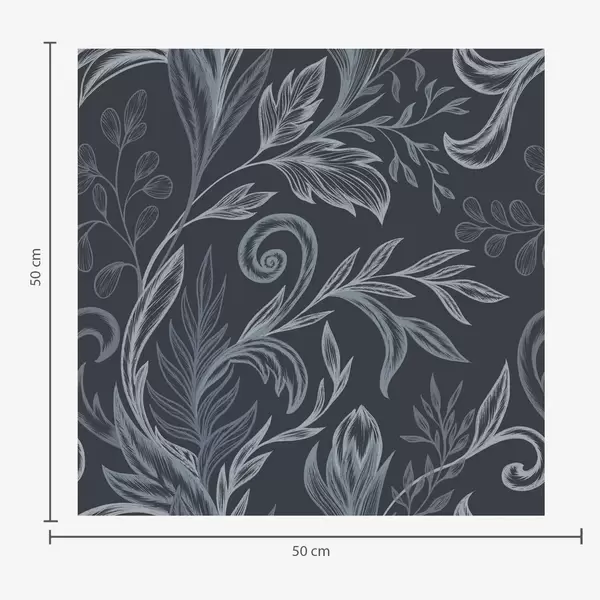 Шпалери Темно-сині закручені листя з ручним затіненням Nr. a00935