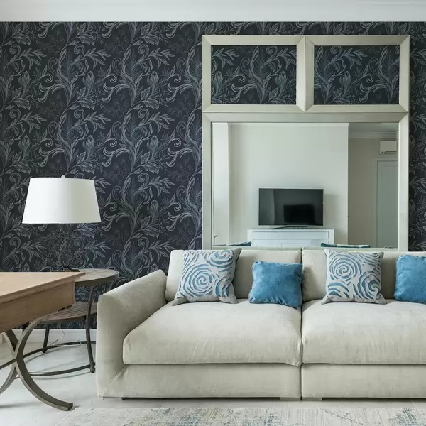 Шпалери Темно-сині закручені листя з ручним затіненням Nr. a00935