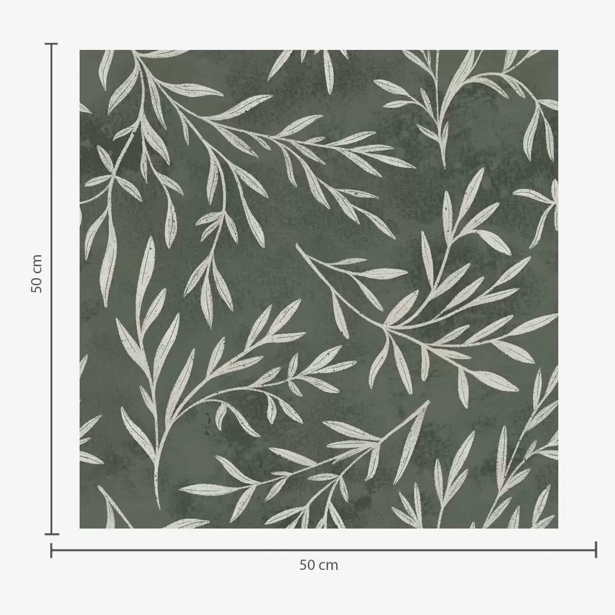 Шпалери Намальовані білі гілки на тлі насиченого салатового кольору Nr. a00936v2