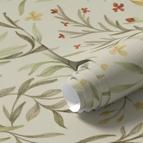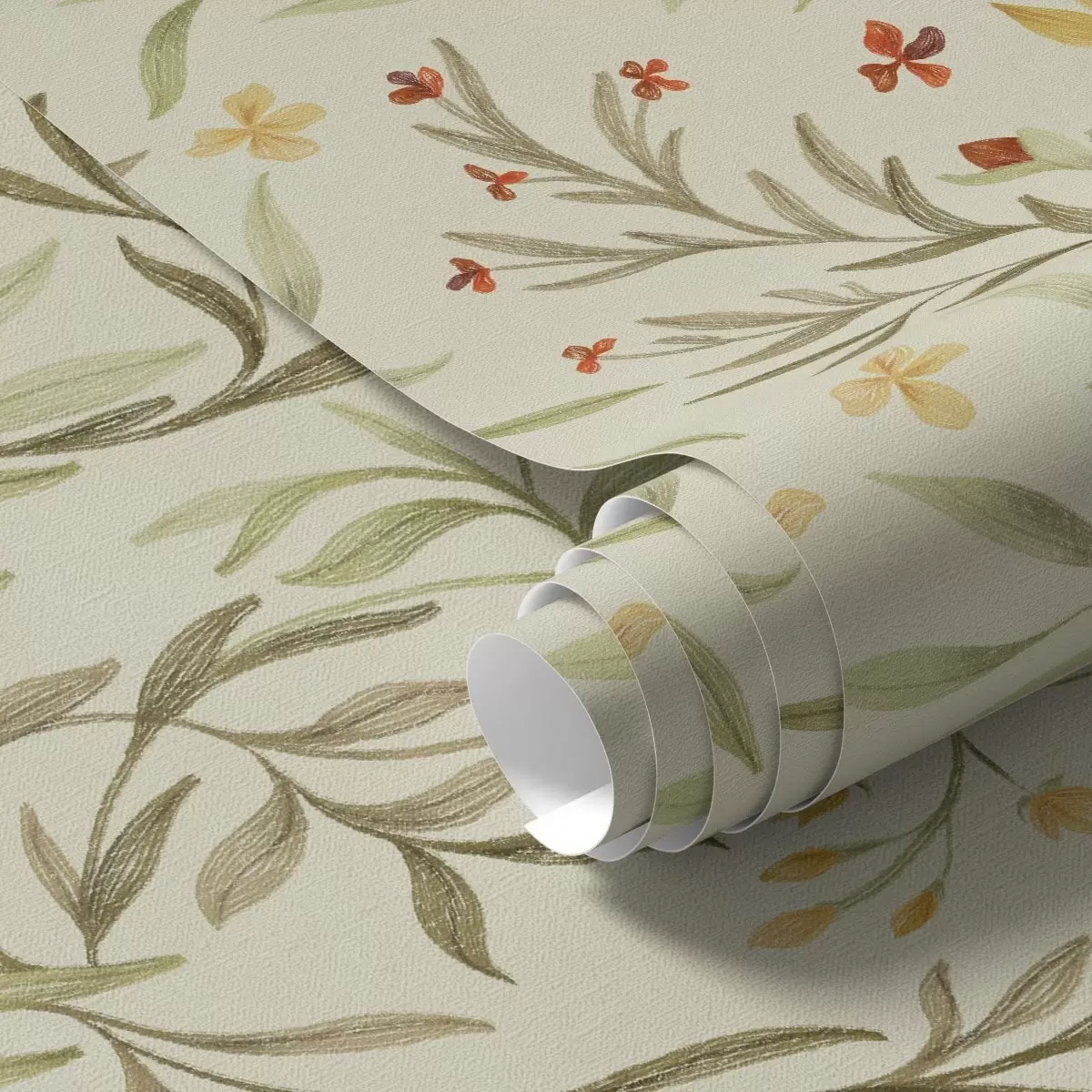 Шпалери Жовті та червоні квіти на світло-зеленому тлі Nr. a00937