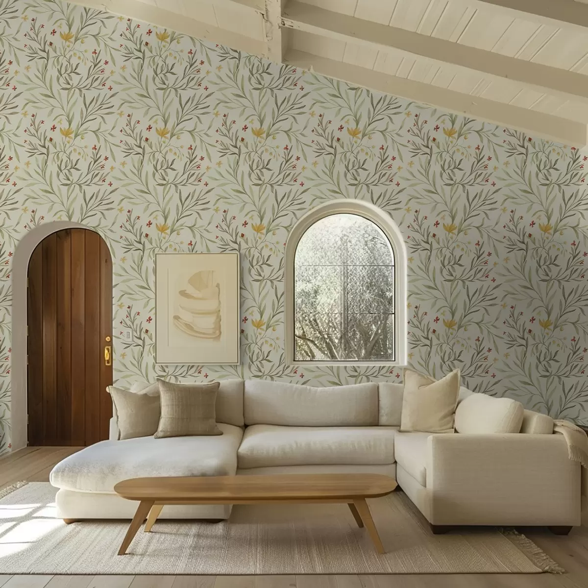 Шпалери Жовті та червоні квіти на світло-зеленому тлі Nr. a00937