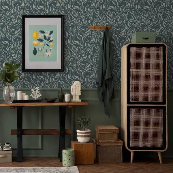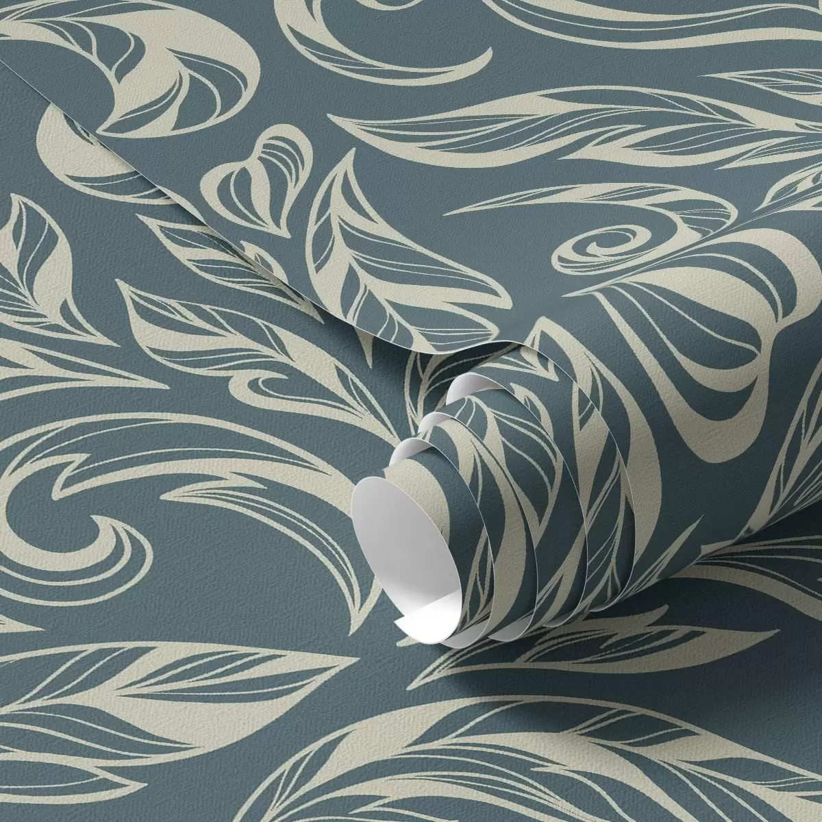 Шпалери Листяний візерунок з легких ліній на синьо-сірому тлі Nr. a00940