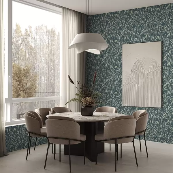 Шпалери Листяний візерунок з легких ліній на синьо-сірому тлі Nr. a00940