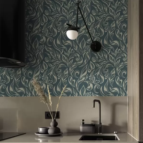 Шпалери Листяний візерунок з легких ліній на синьо-сірому тлі Nr. a00940