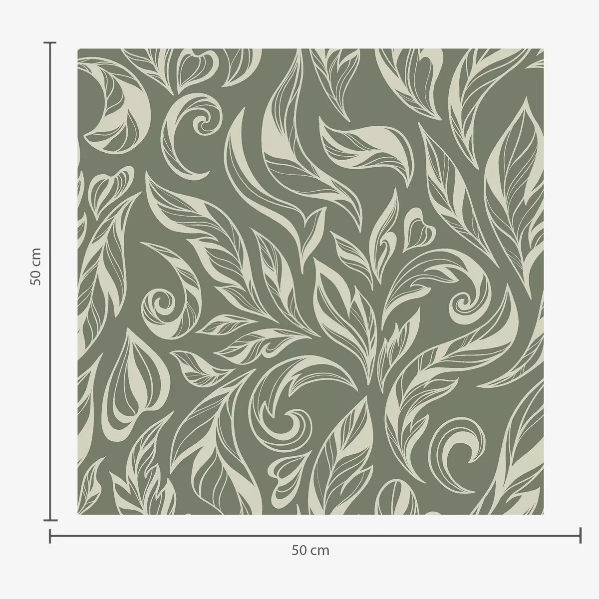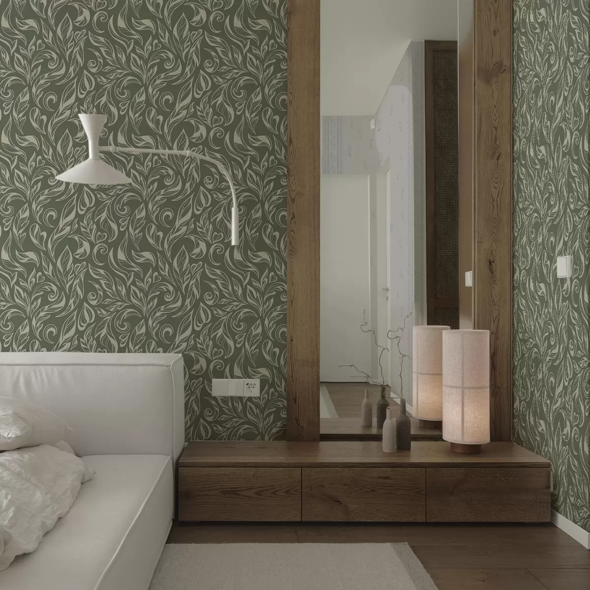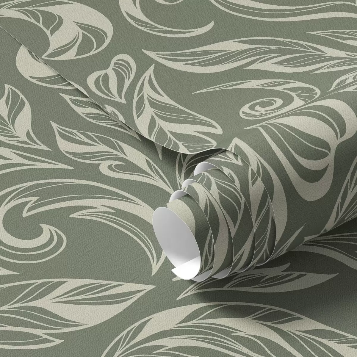 Шпалери Кремовий листовий орнамент на зеленувато-сірому тлі Nr. a00940v2