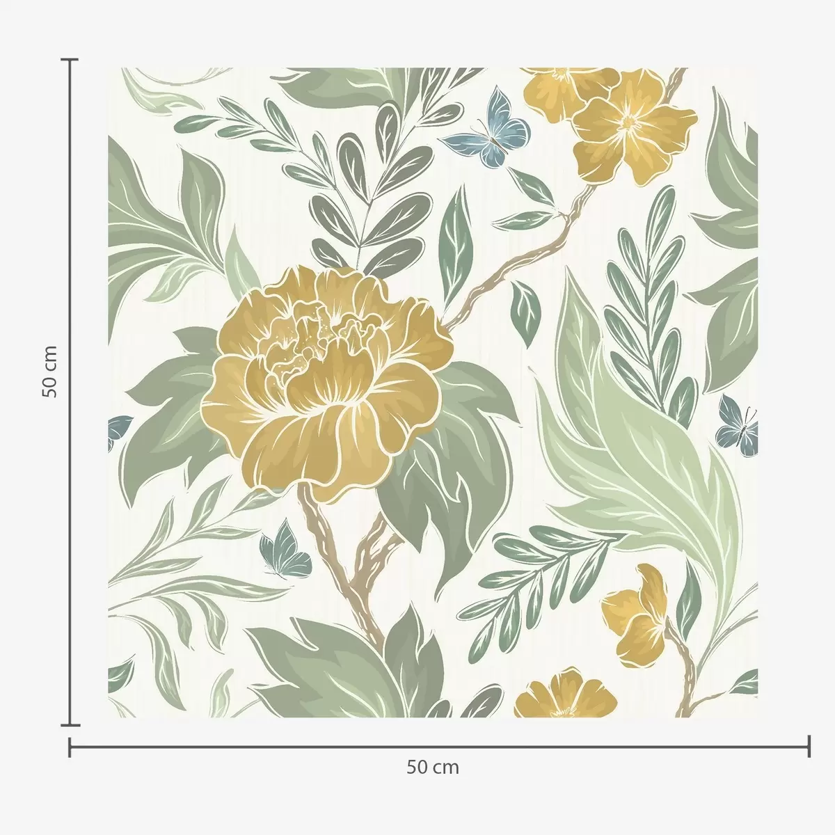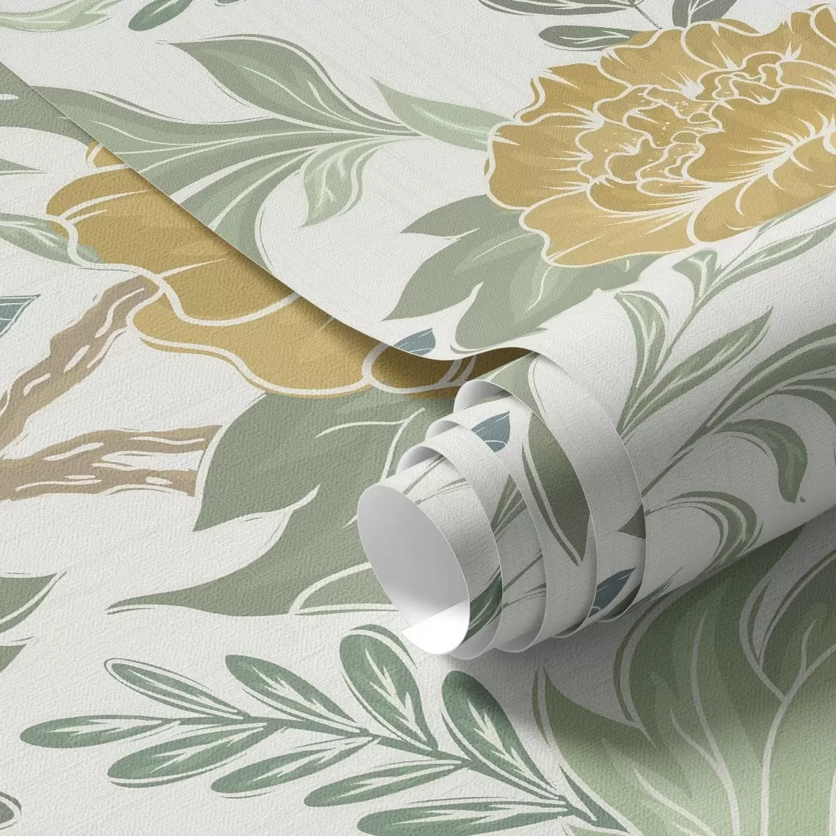 Шпалери Великі жовті півонії та зелень на світлому тлі Nr. a00941