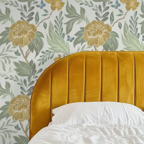 Шпалери Великі жовті півонії та зелень на світлому тлі Nr. a00941