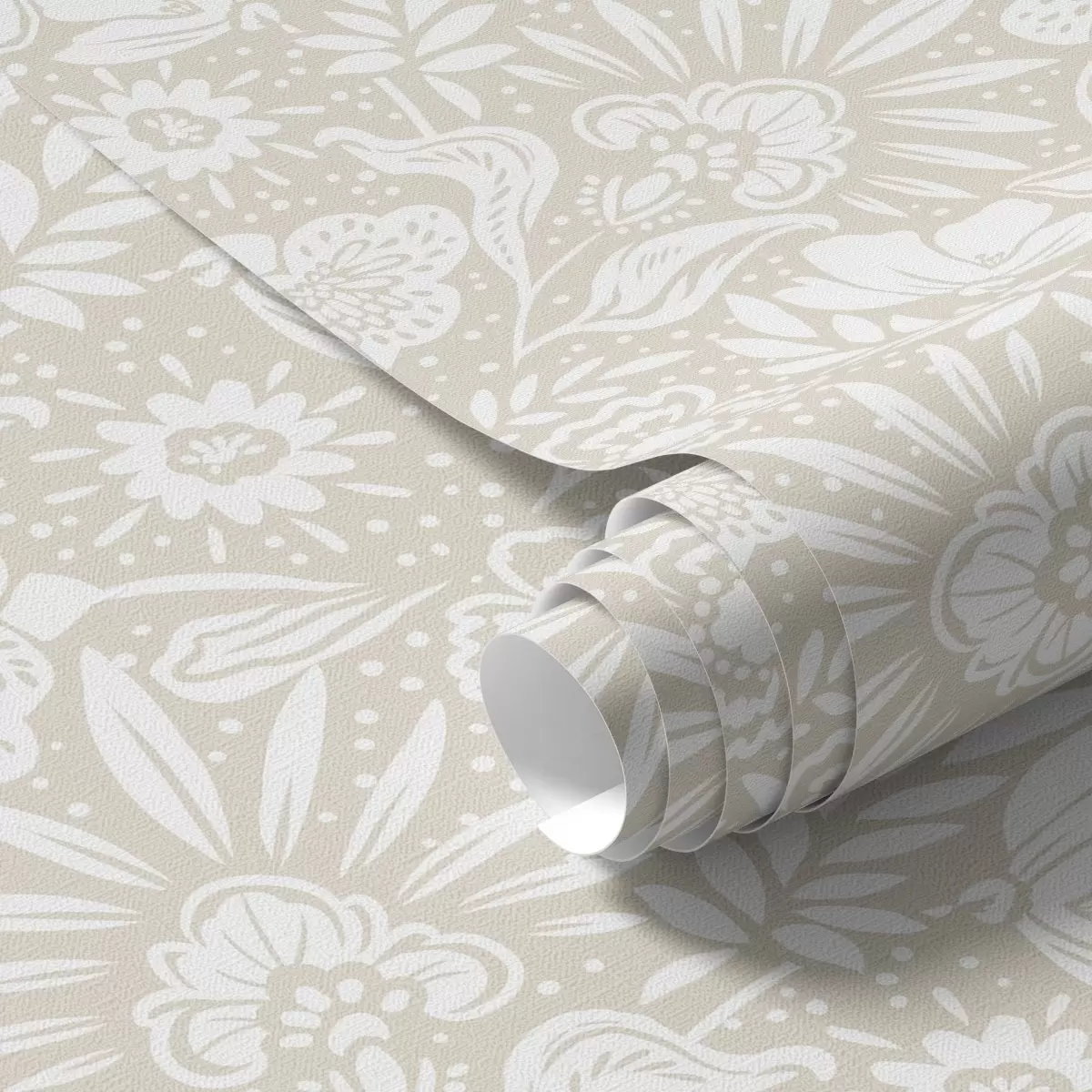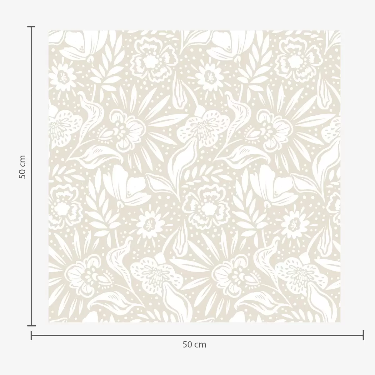 Шпалери Білий лінійний квітковий орнамент на бежевому тлі Nr. a00956