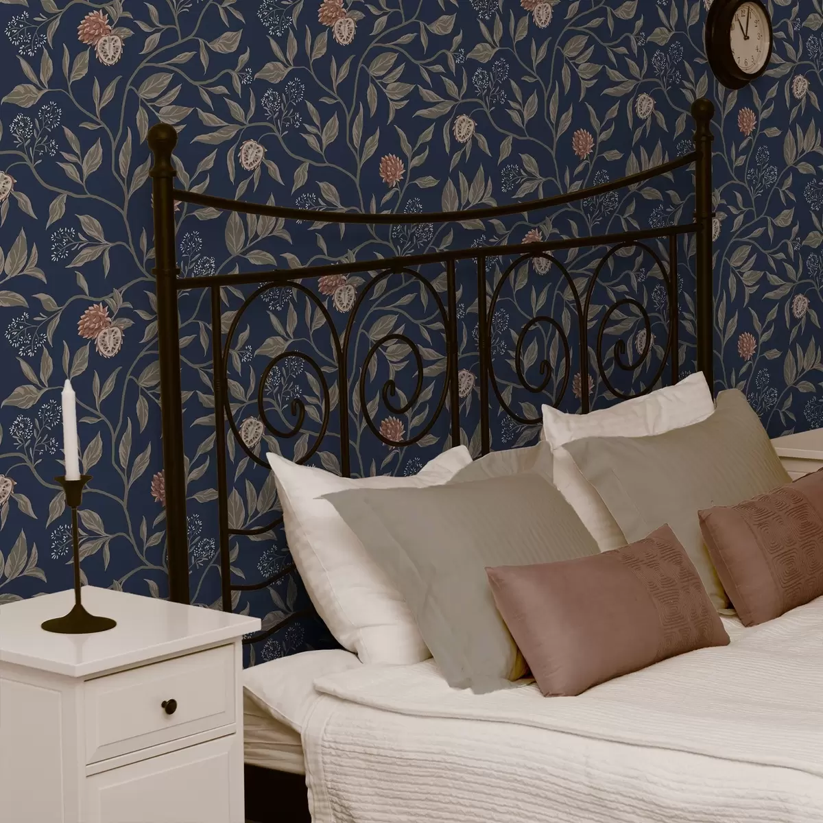 Шпалери Блакитний сад з гілками, плодами та крихітними квіточками Nr. a00959