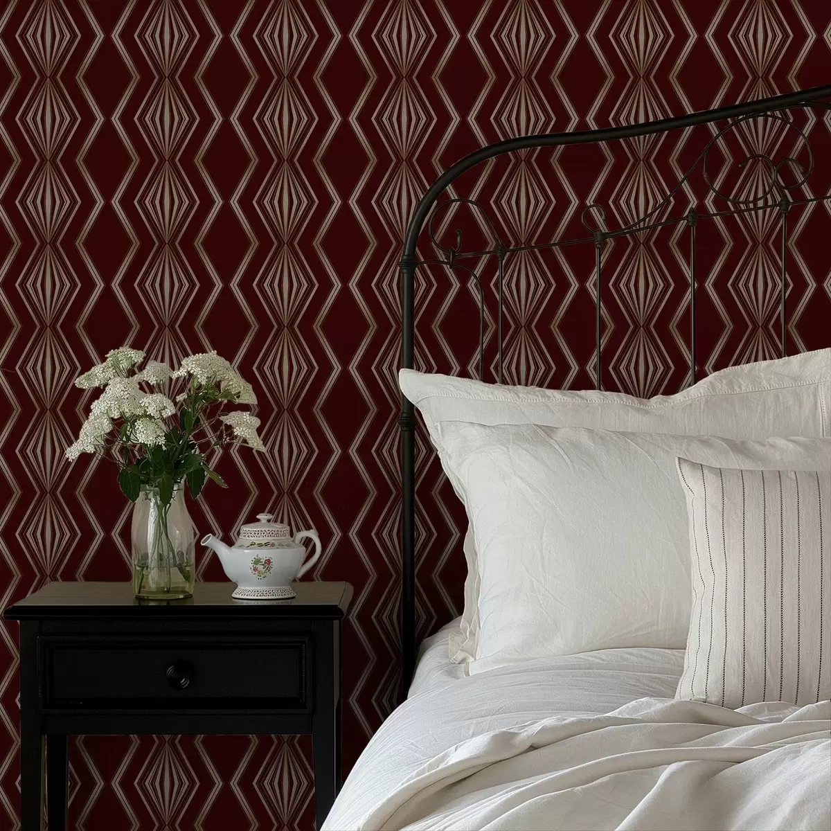 Шпалери Бордовий фон з ритмічними ромбами та зигзагоподібними лініями Nr. a00974