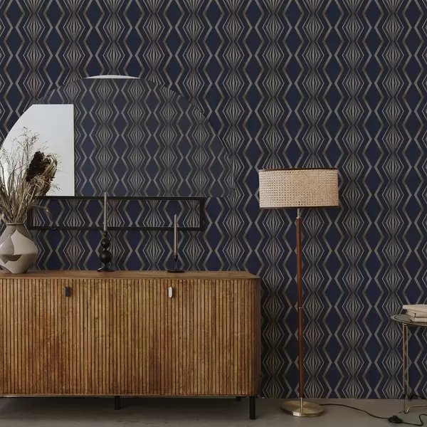 Шпалери Темно-синій фон з геометричними ромбами та зигзагами Nr. a00974v2