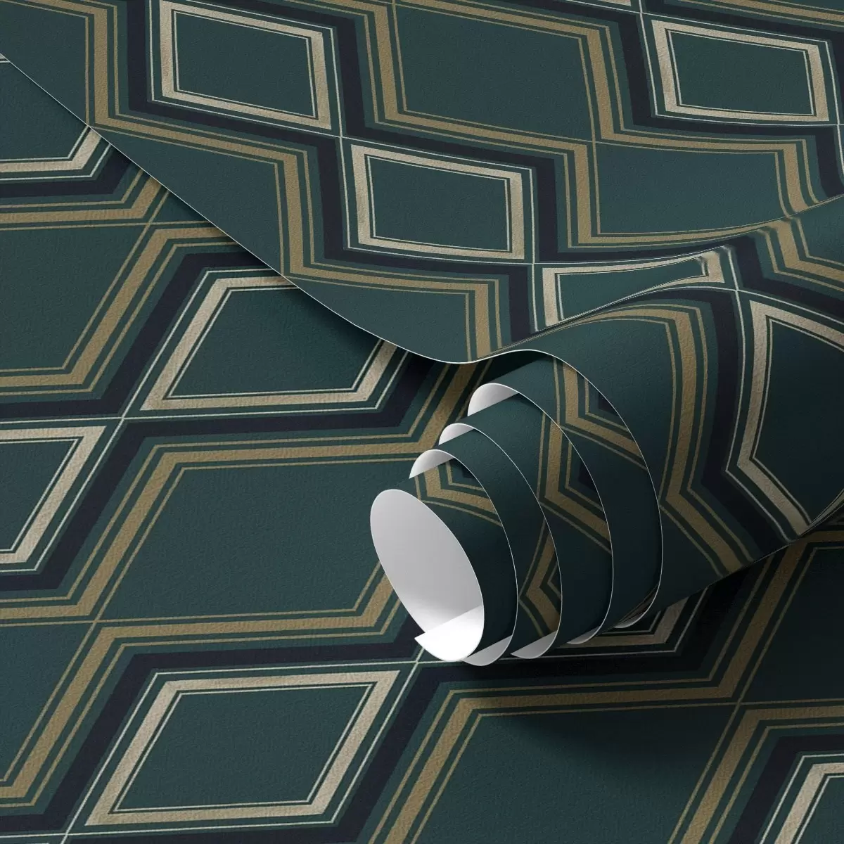 Шпалери Темно-синьо-зелений фон з вертикальними рядами ромбів Nr. a00976