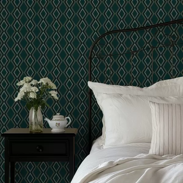 Шпалери Темно-синьо-зелений фон з вертикальними рядами ромбів Nr. a00976