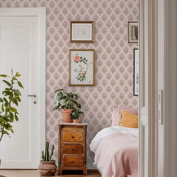 Шпалери Ритмічний мотив краплі з квіткою на пудровому тлі Nr. a00977