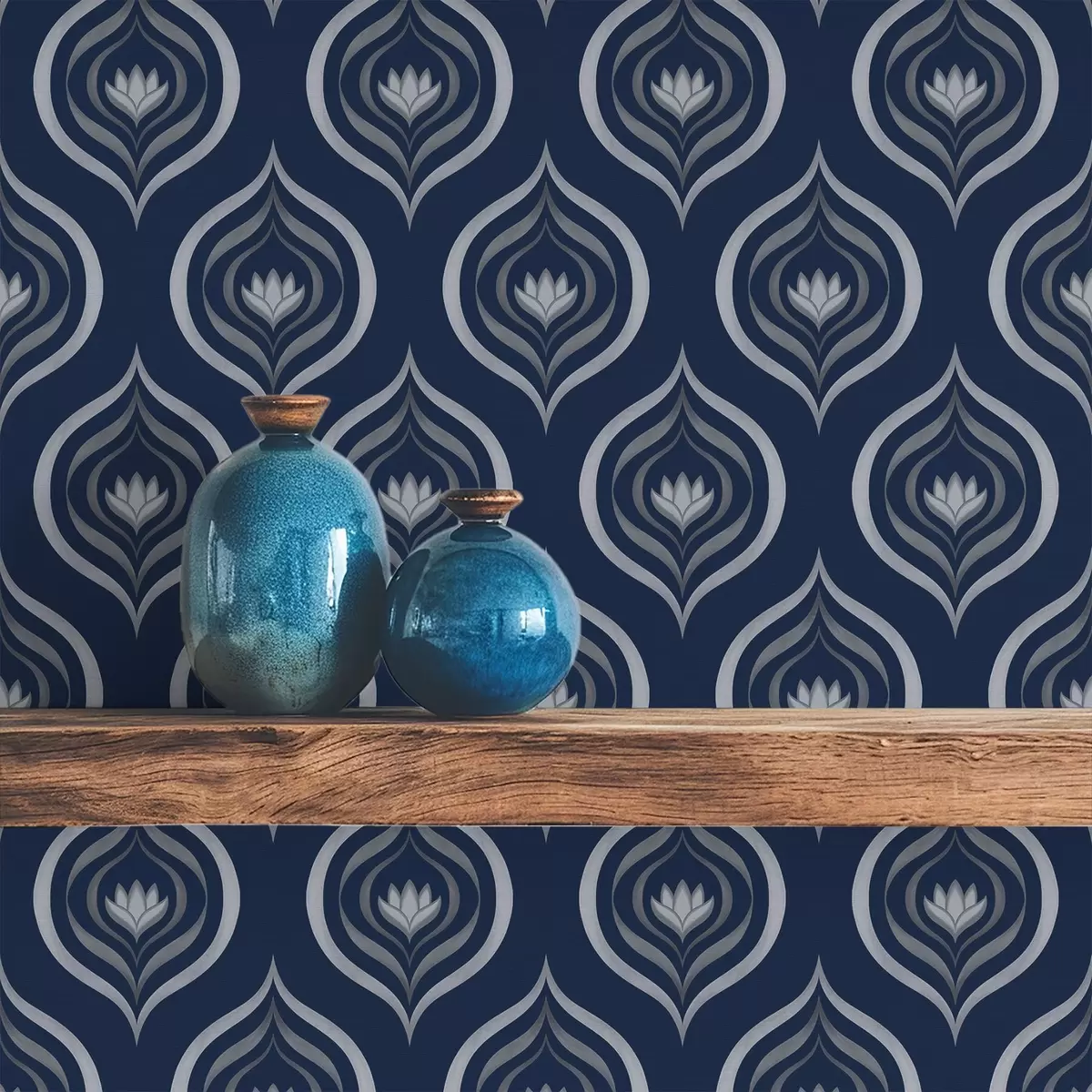 Шпалери Контрастні мотиви крапель з квіткою на темно-синьому тлі Nr. a00977v1