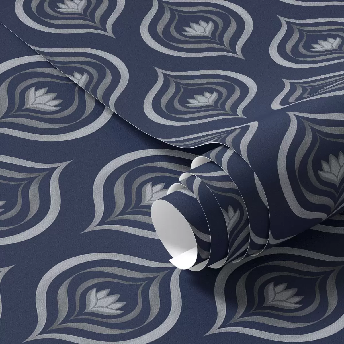 Шпалери Контрастні мотиви крапель з квіткою на темно-синьому тлі Nr. a00977v1