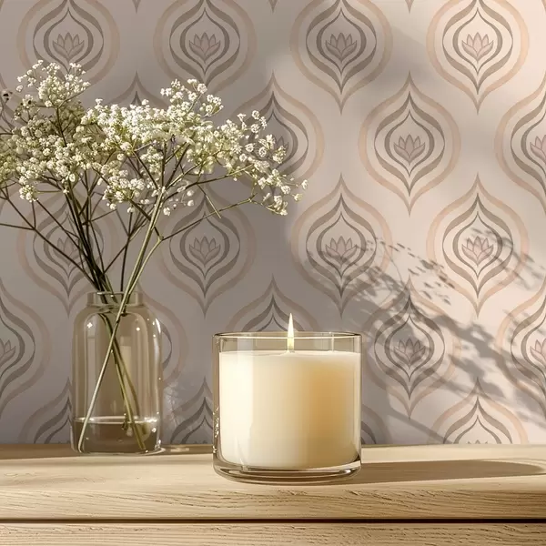 Шпалери Порошкові краплі з квіткою на теплому тлі Nr. a00977v2