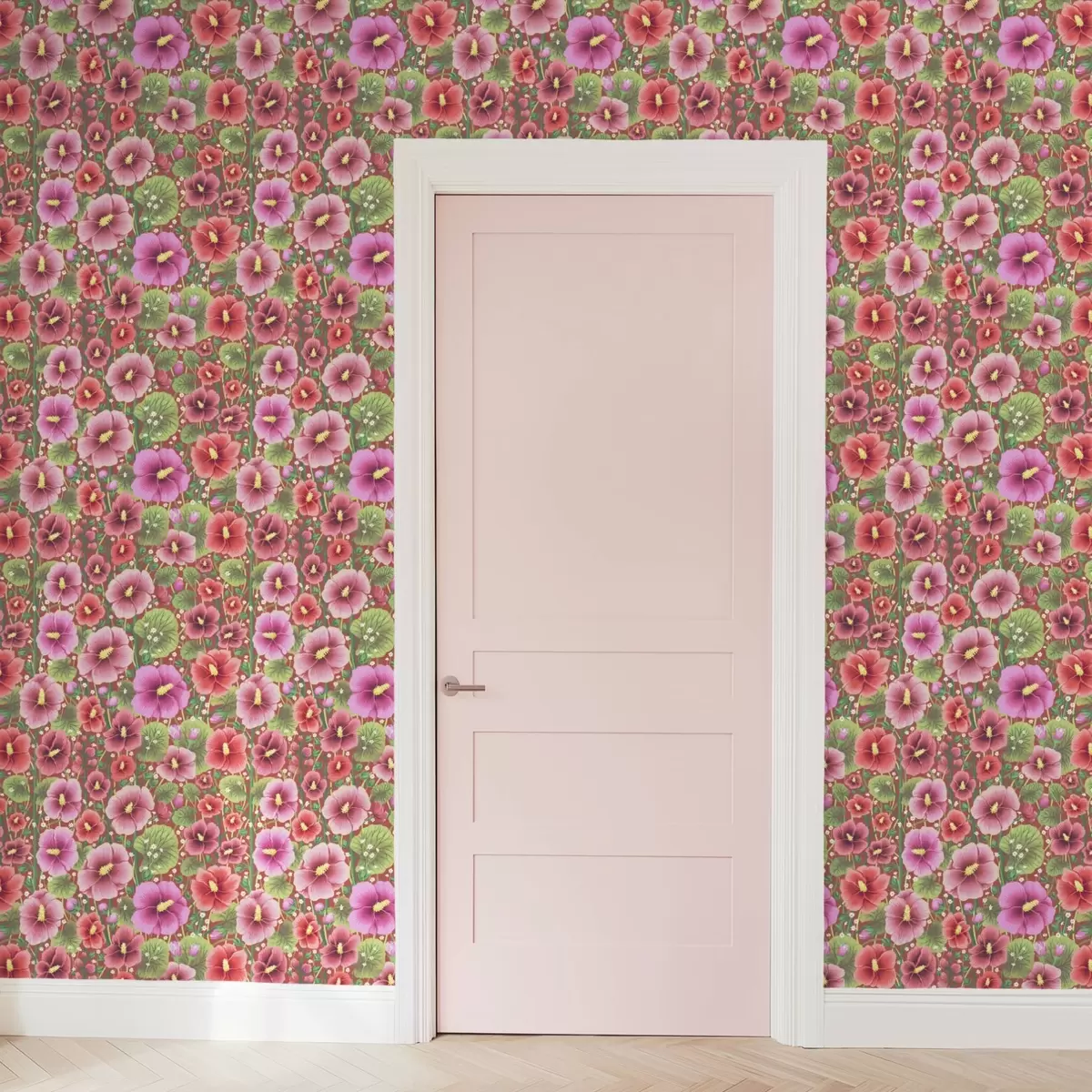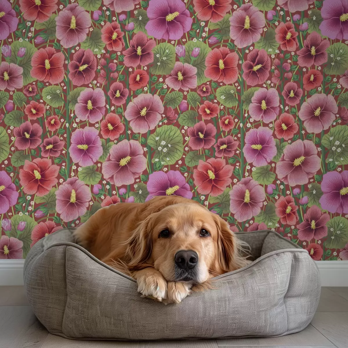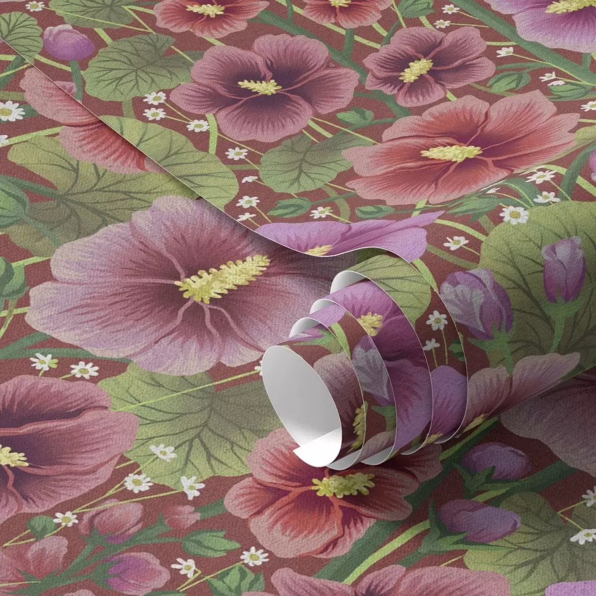 Шпалери Квітучий гібіскус на теплому коричнево-червоному тлі Nr. a00993v1