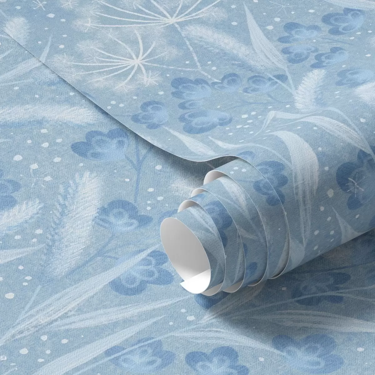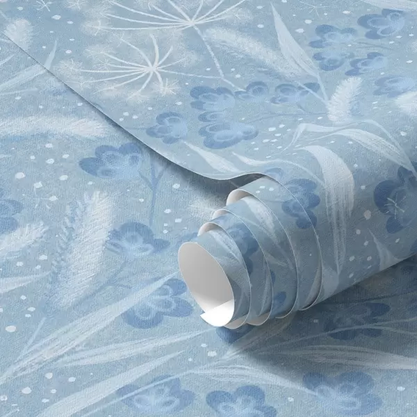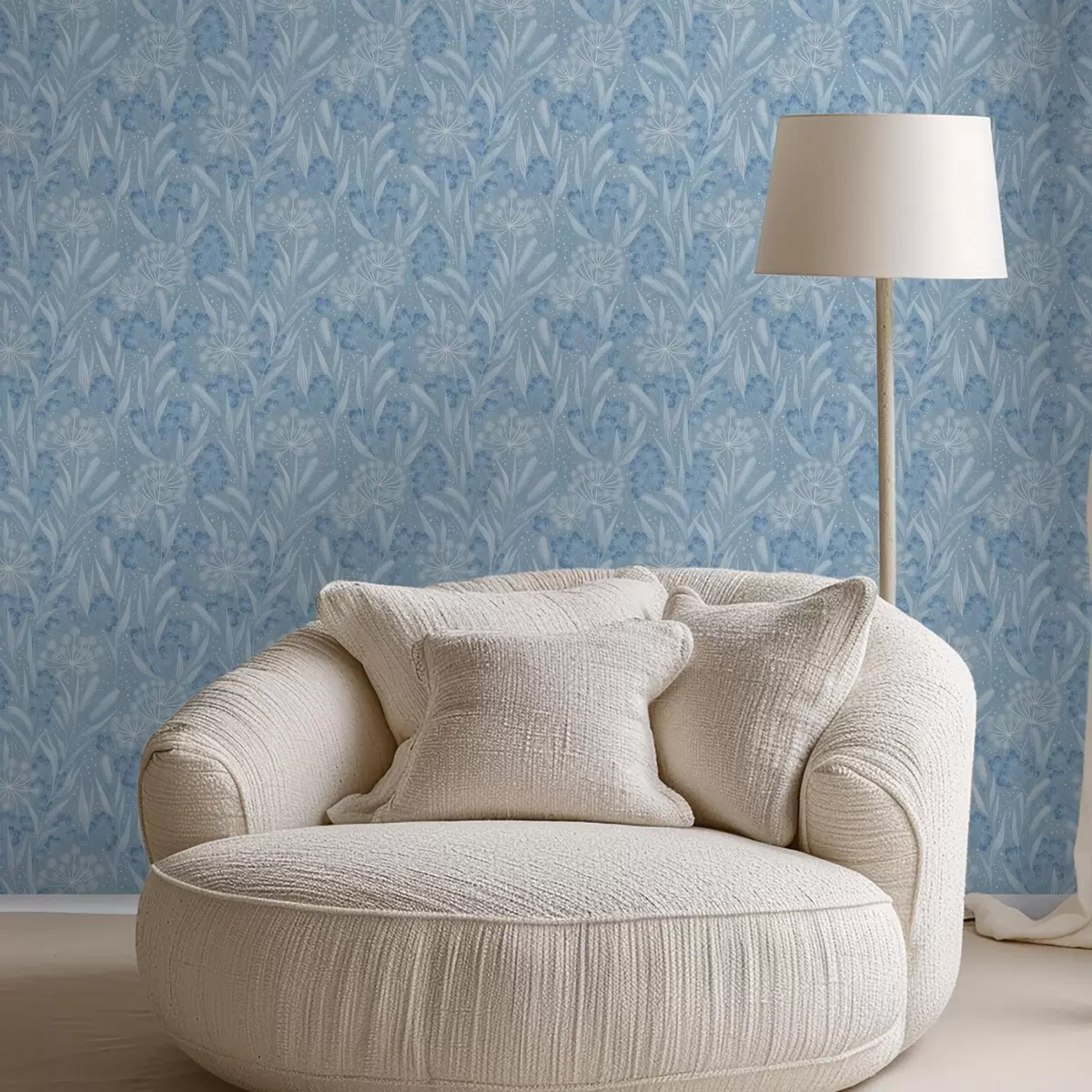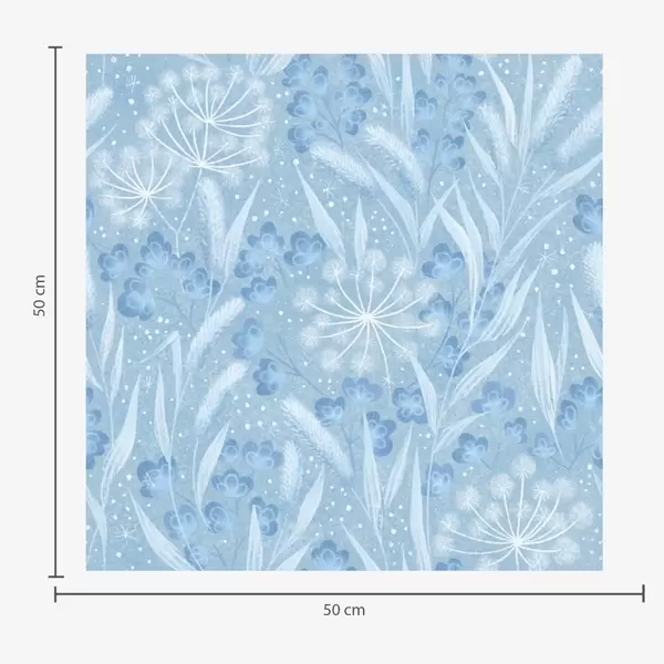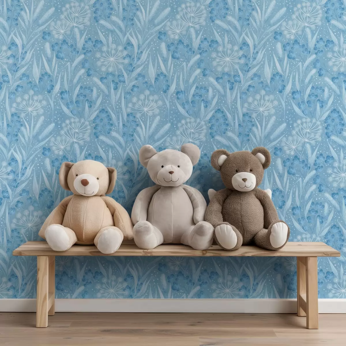Шпалери Морозна блакитна галявина з насінням кульбаби та крихітними квіточками Nr. a00995