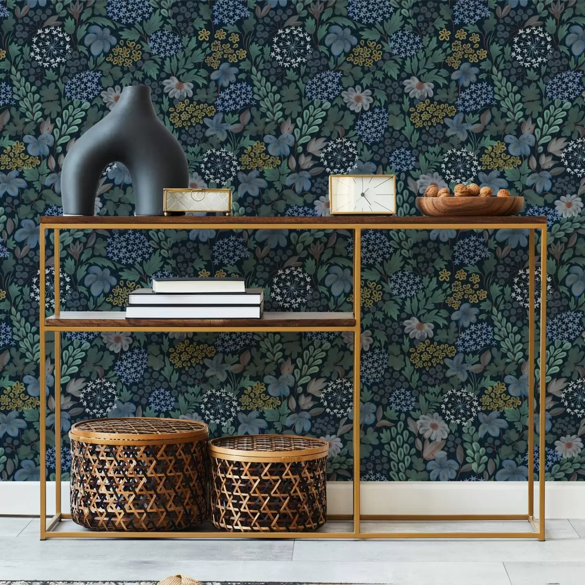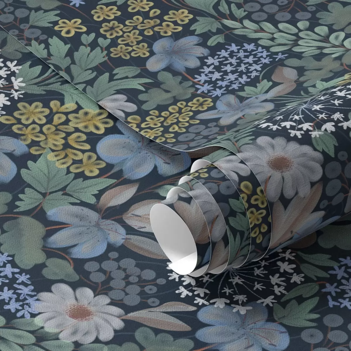 Шпалери Нічний сад з блакитними ліліями, ягодами та дикою зеленню Nr. a00996