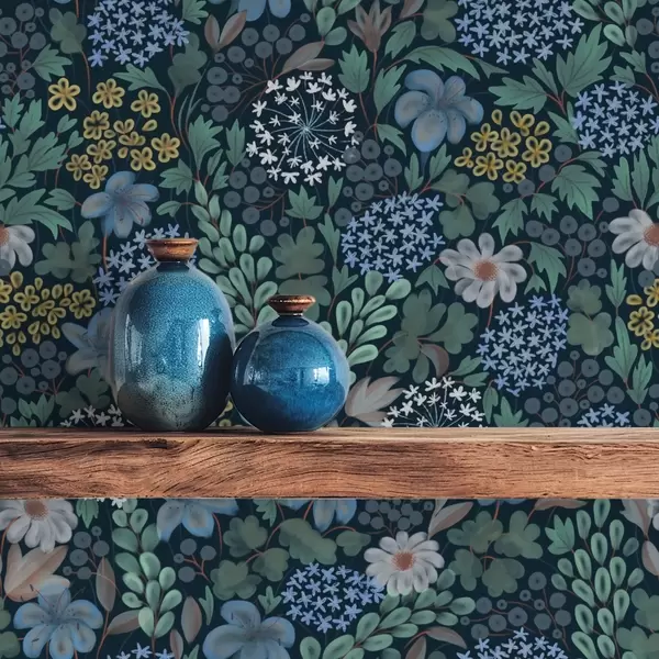 Шпалери Нічний сад з блакитними ліліями, ягодами та дикою зеленню Nr. a00996