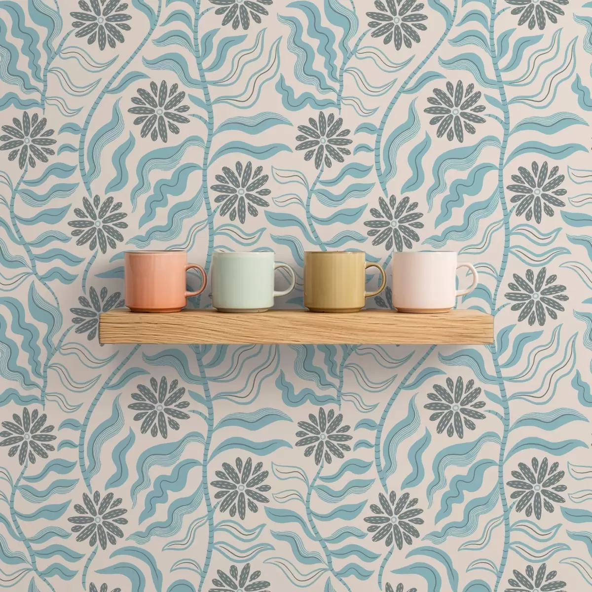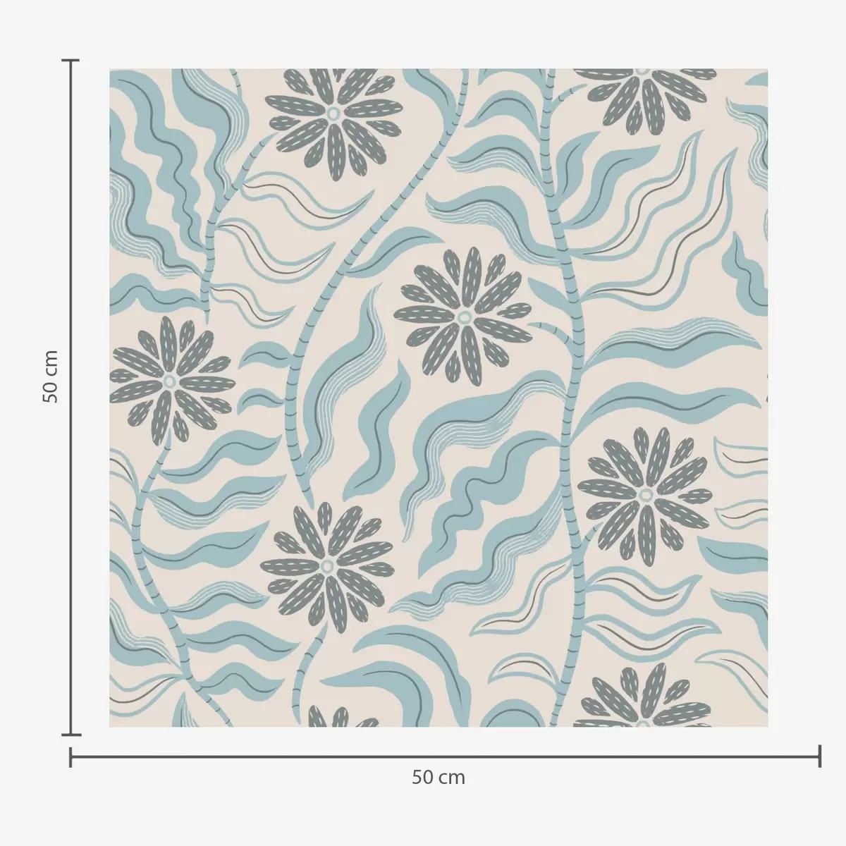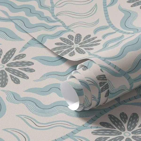 Шпалери Абстрактні квіти та хвилясті листя в ніжних блакитних тонах Nr. a00998v1