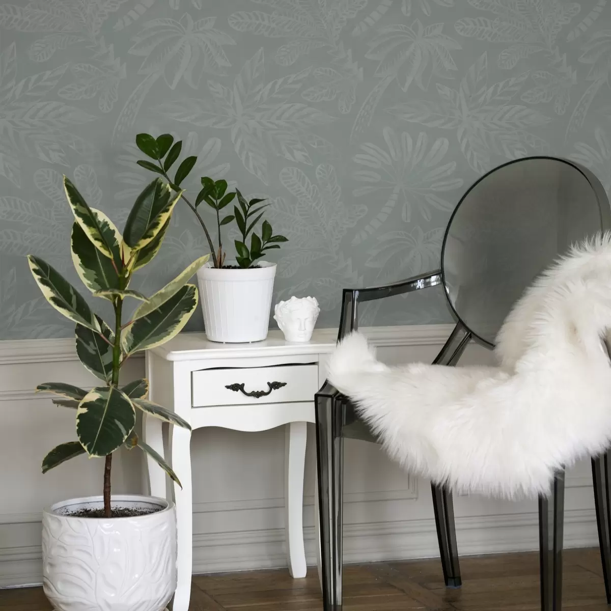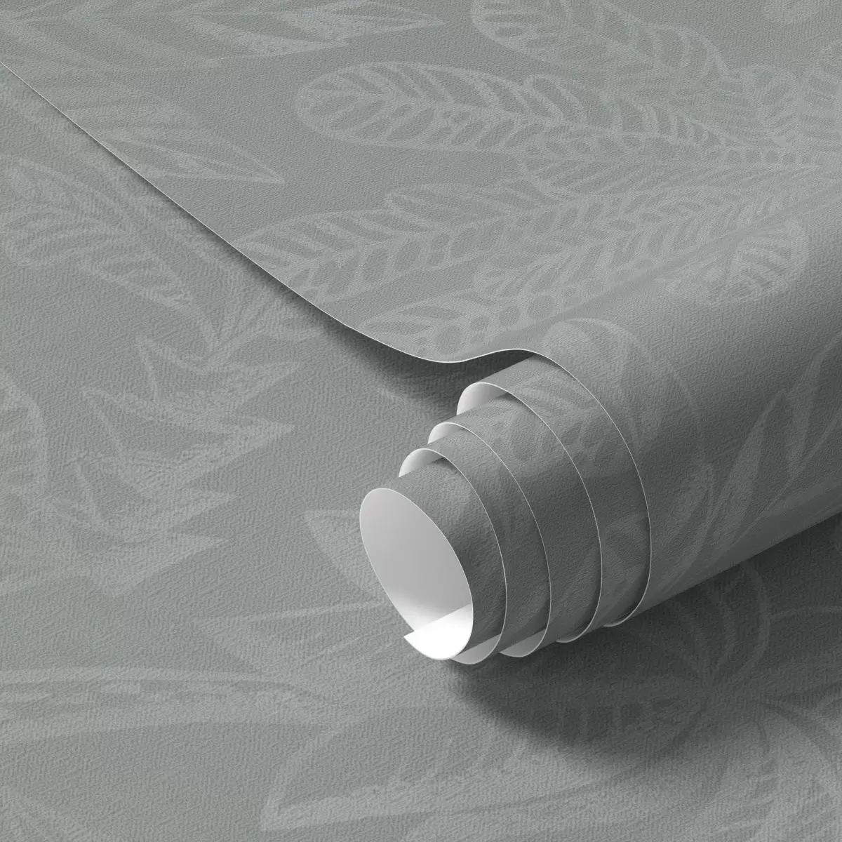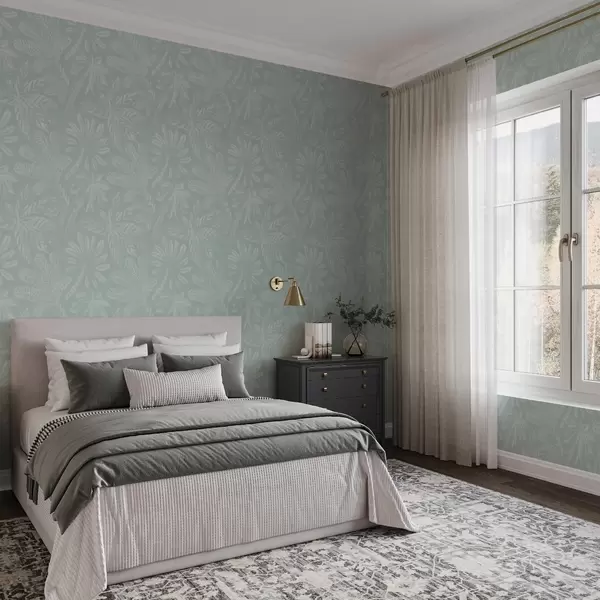 Шпалери Матові великі тропічні листя в м'ятно-сірій палітрі Nr. a01001