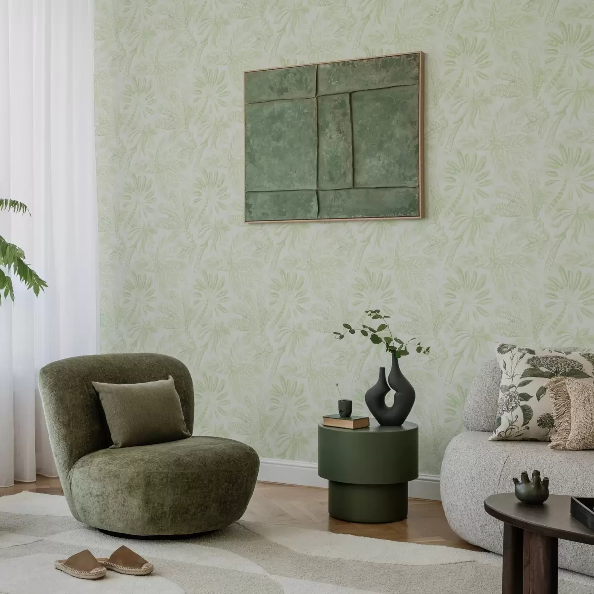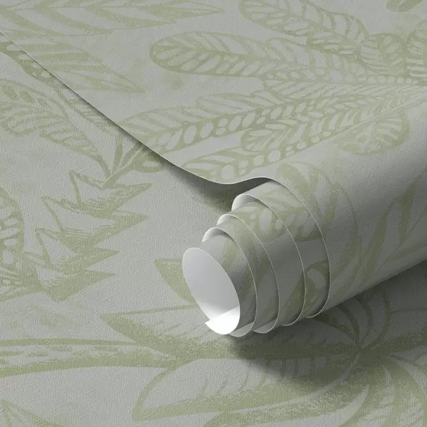 Шпалери Намальовані тропічні листя у свіжих світло-зелених тонах Nr. a01001v1