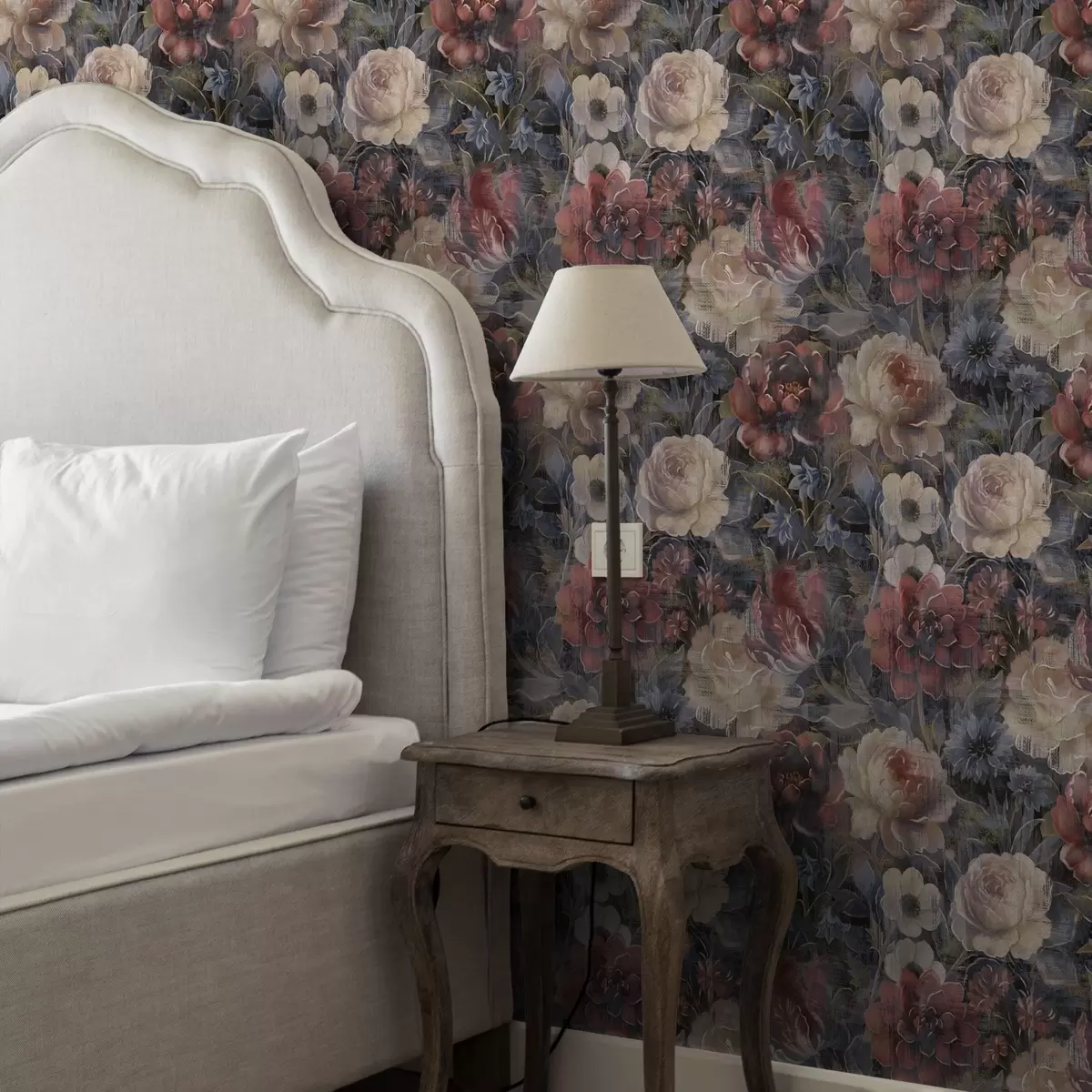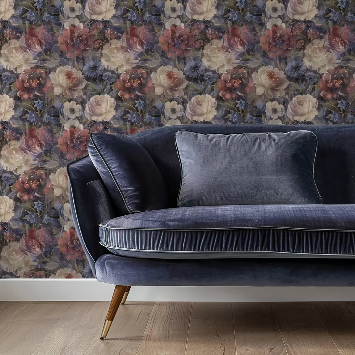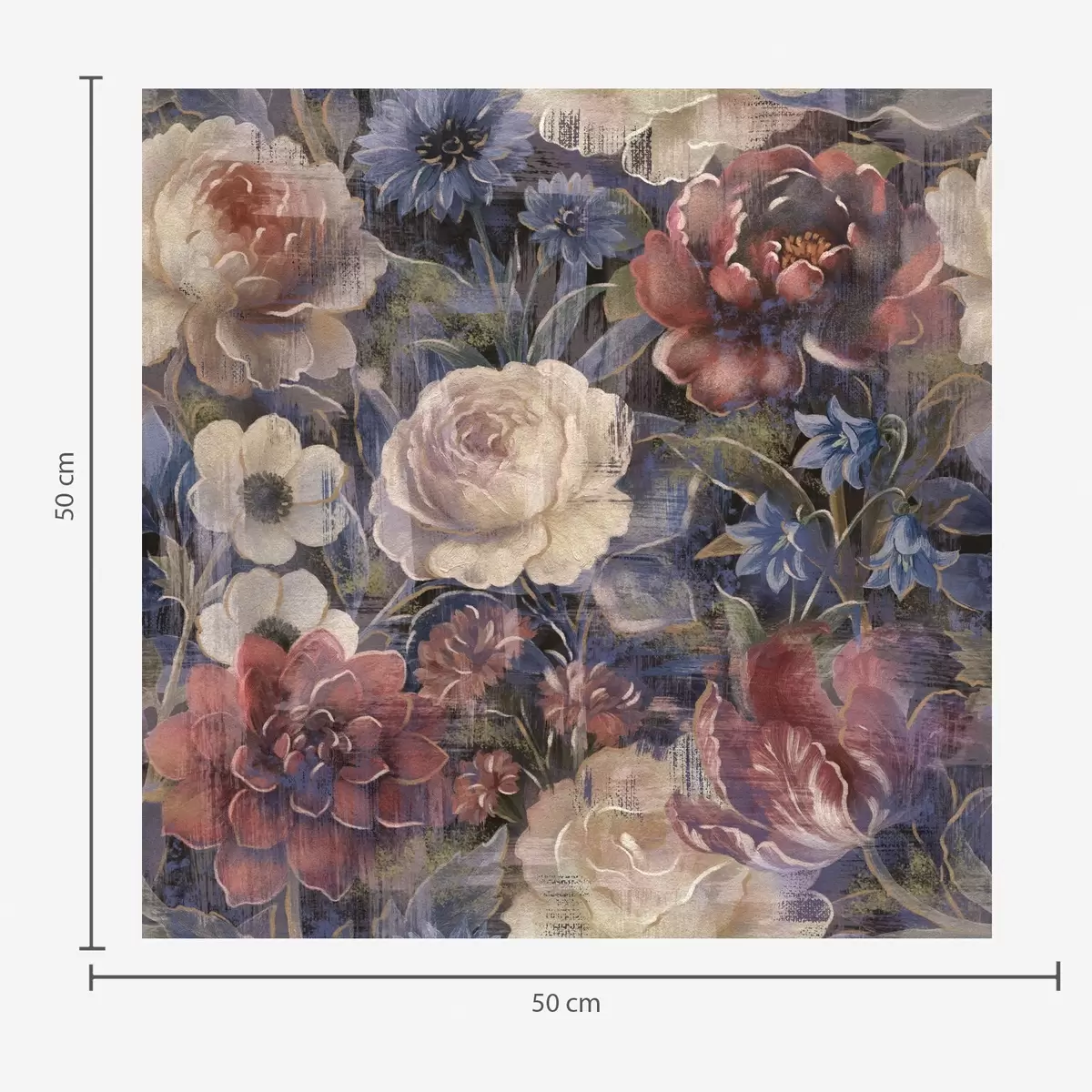 Шпалери Живописний букет великих квітів на глибокому індиговому тлі Nr. a01021