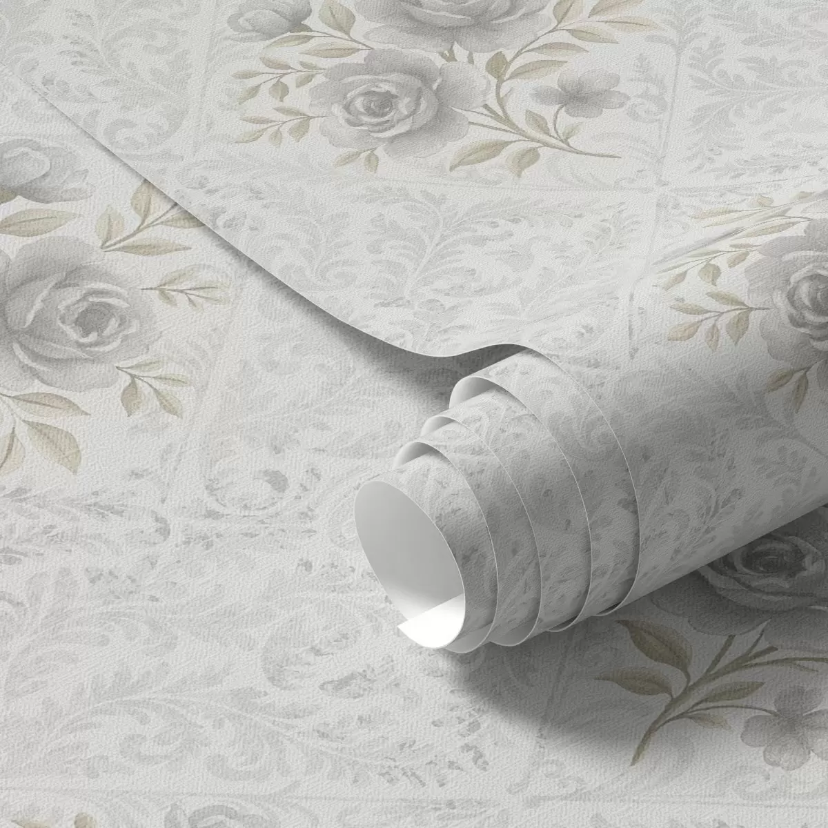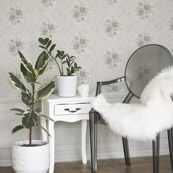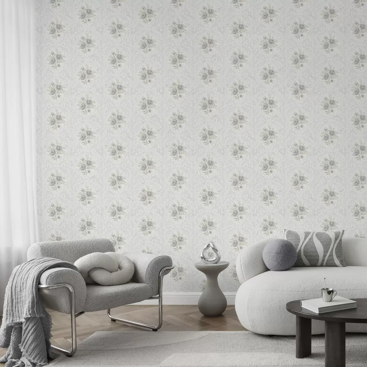 Шпалери Легкий дамаський візерунок із сірими трояндами у вигляді м'яких ромбів Nr. a01024