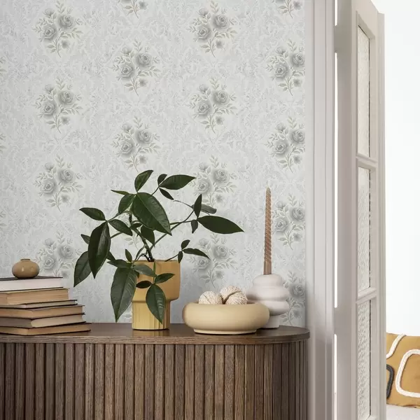 Шпалери Легкий дамаський візерунок із сірими трояндами у вигляді м'яких ромбів Nr. a01024