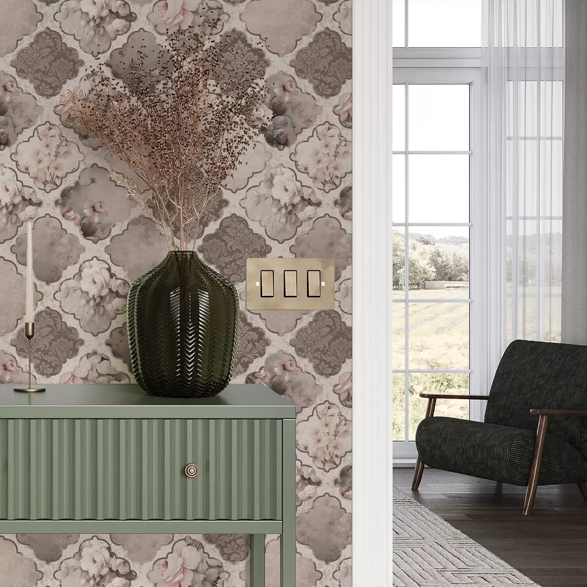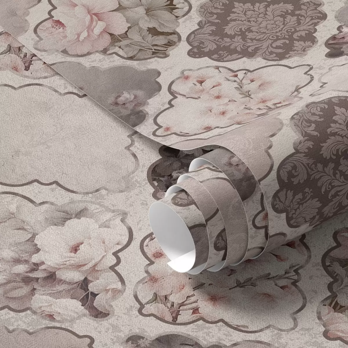 Шпалери Романтична мозаїка з квіткових медальйонів у пильних тонах Nr. a01027