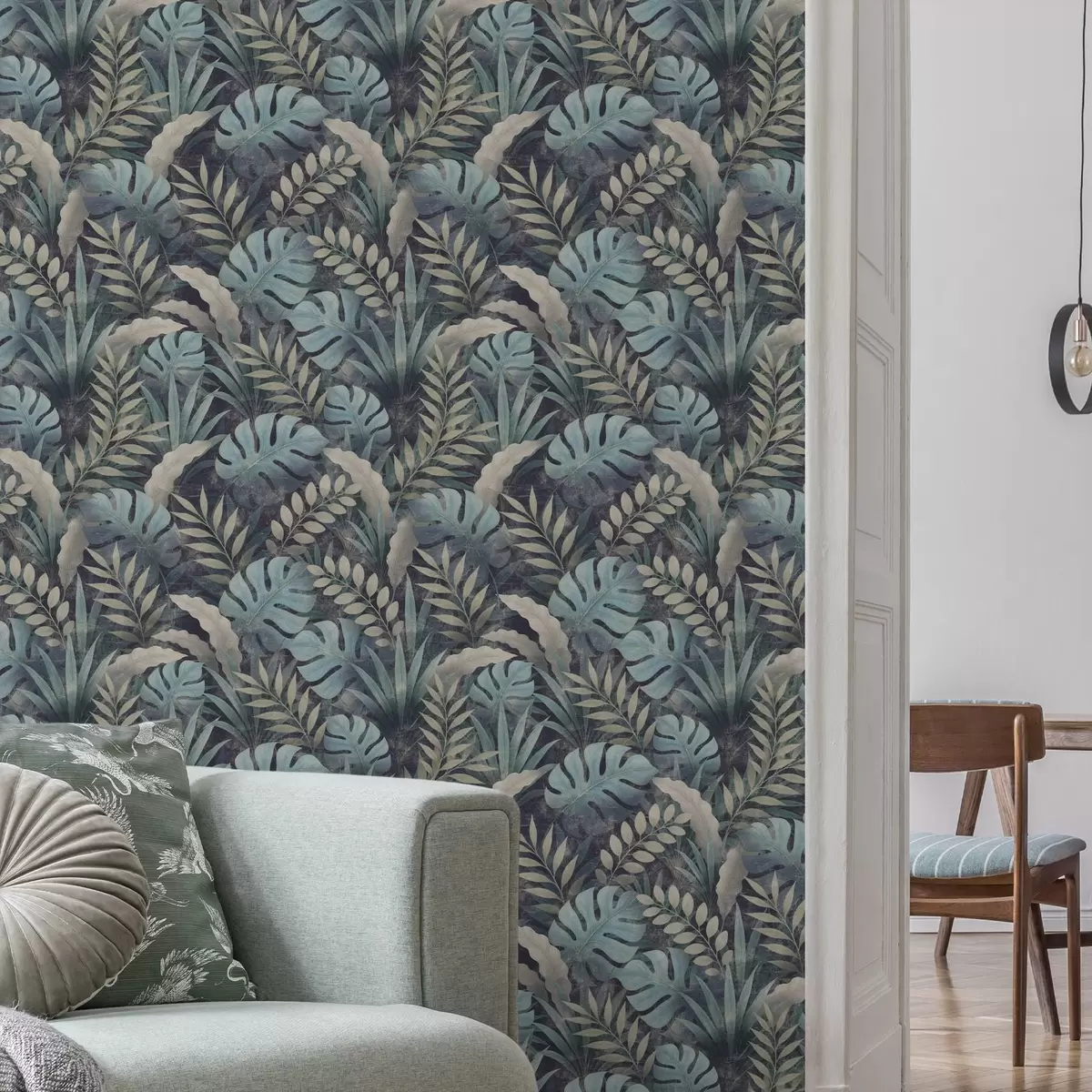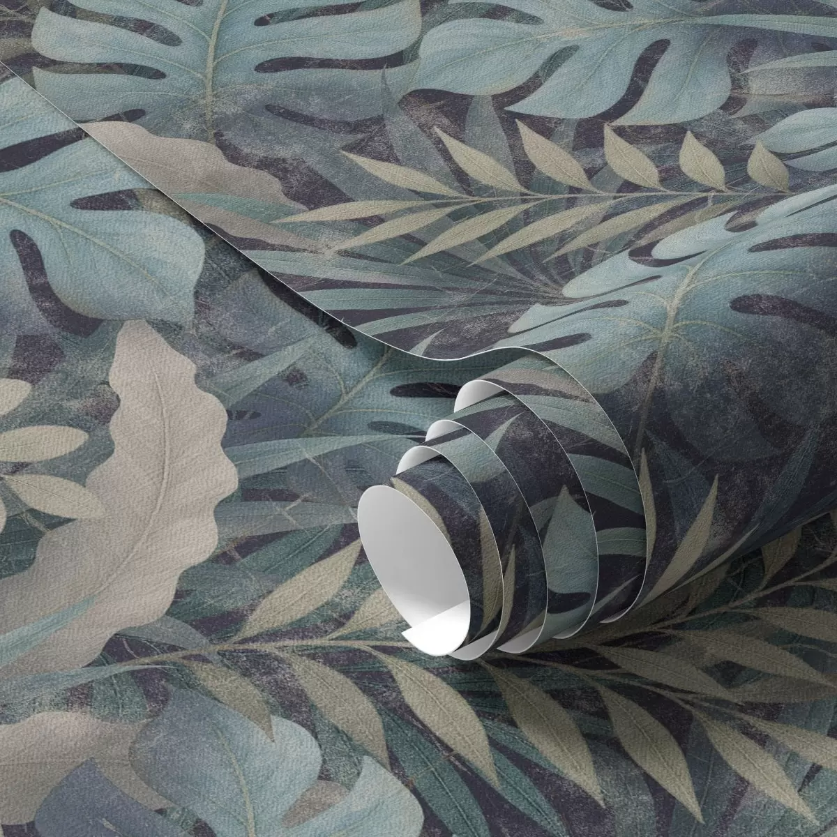 Шпалери Тропічна листя в прохолодних синьо-зелених тонах Nr. a01035