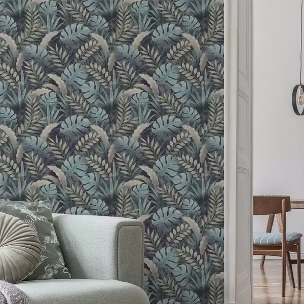 Шпалери Тропічна листя в прохолодних синьо-зелених тонах Nr. a01035