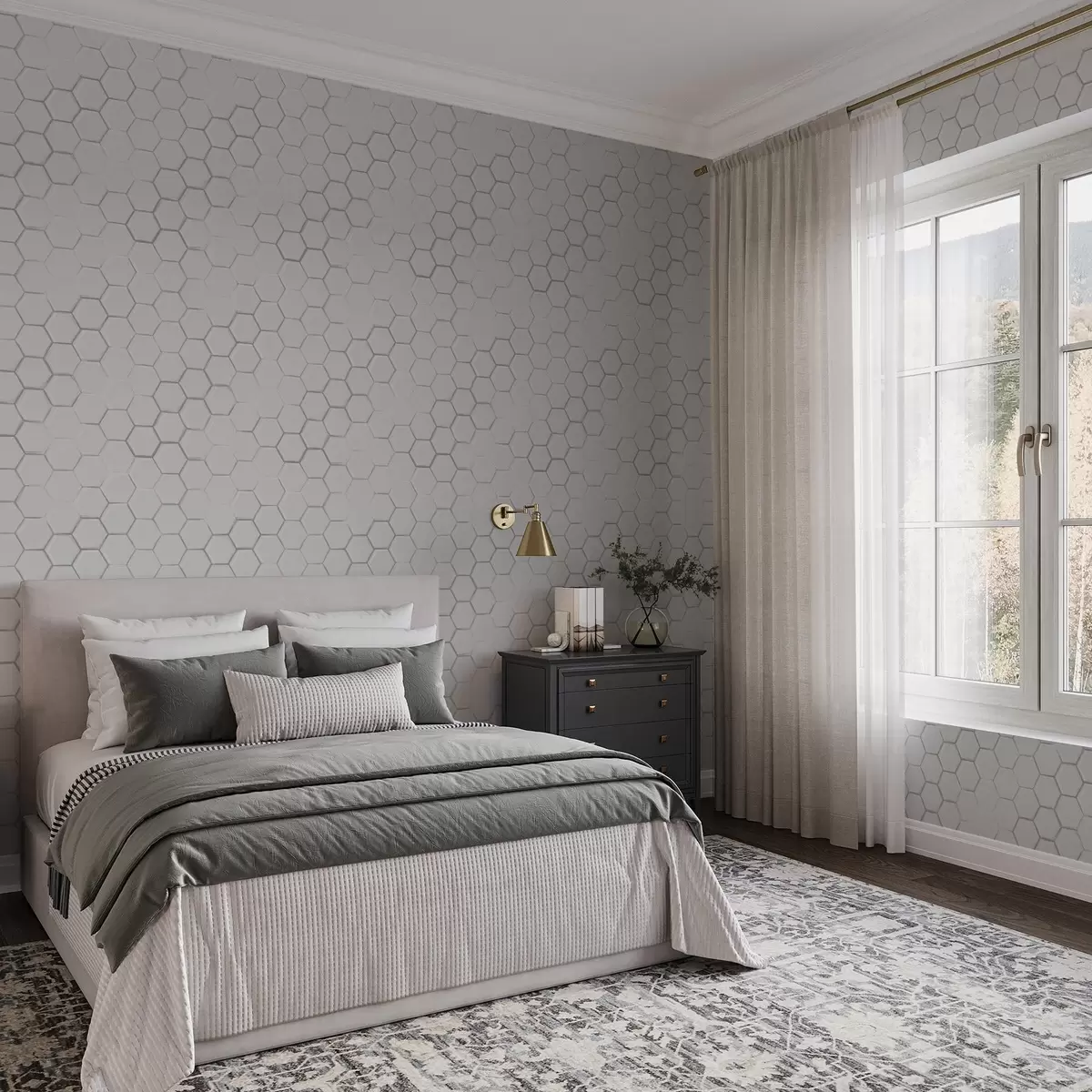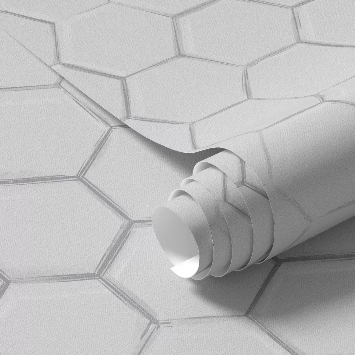 Шпалери Білі тривимірні шестикутники на гладкому тлі Nr. a01059