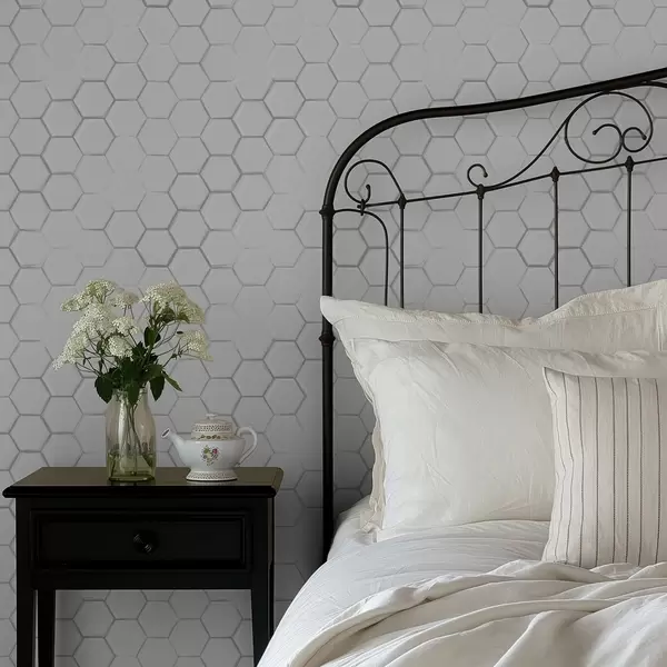 Шпалери Білі тривимірні шестикутники на гладкому тлі Nr. a01059