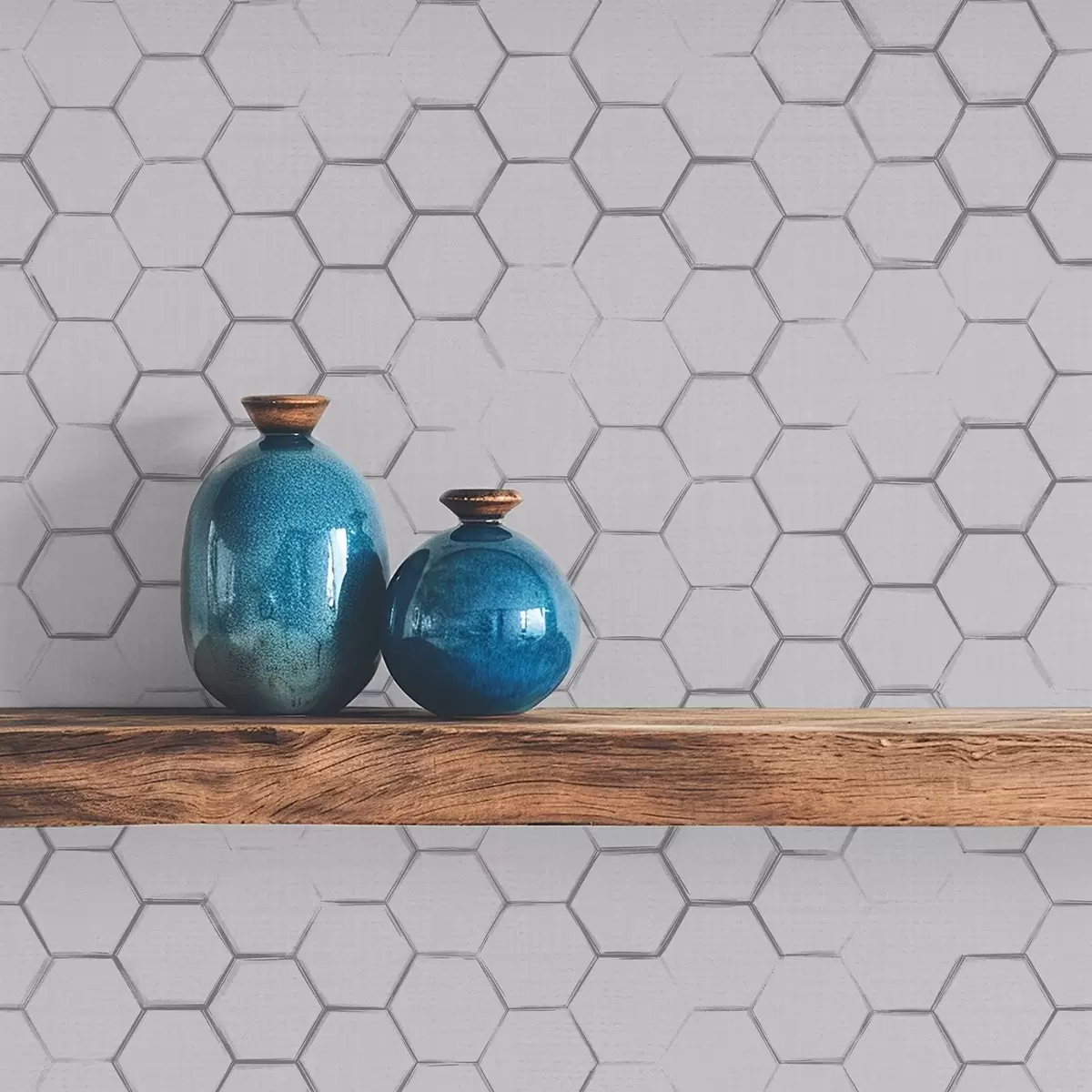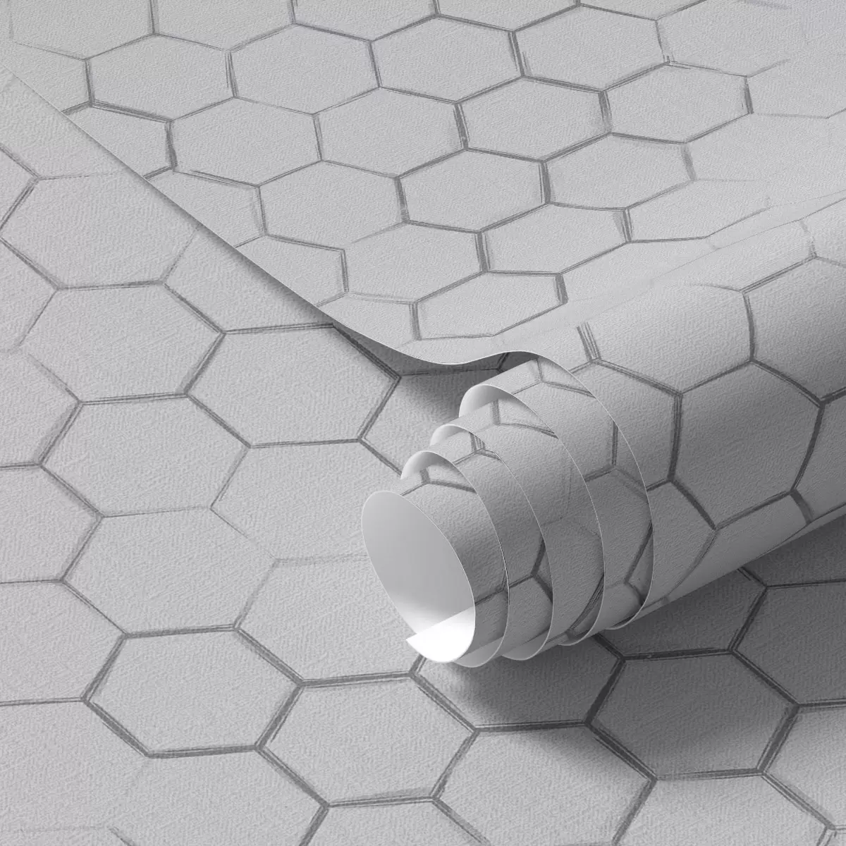 Шпалери Дрібна шестикутна сітка на світло-сірому текстурованому тлі Nr. a01060