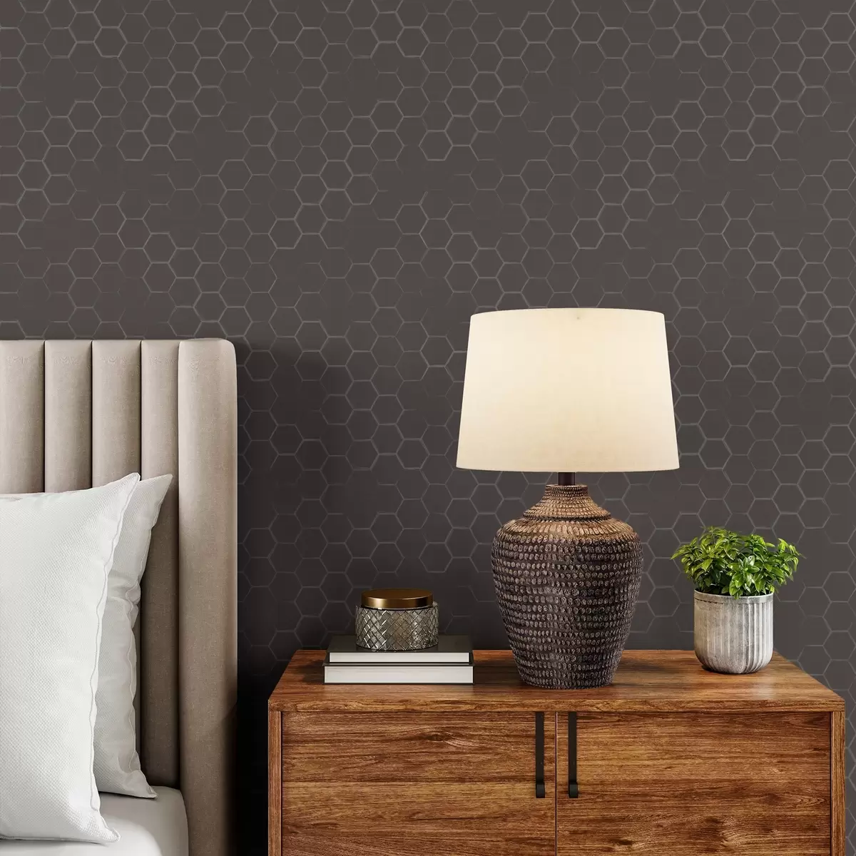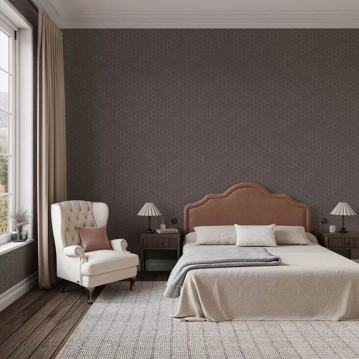 Шпалери Щільний шестикутний візерунок у м'яких сірих тонах Nr. a01060v2
