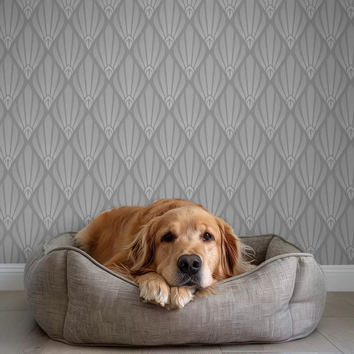 Шпалери Сірий арт-деко з віялоподібними формами Nr. a01064