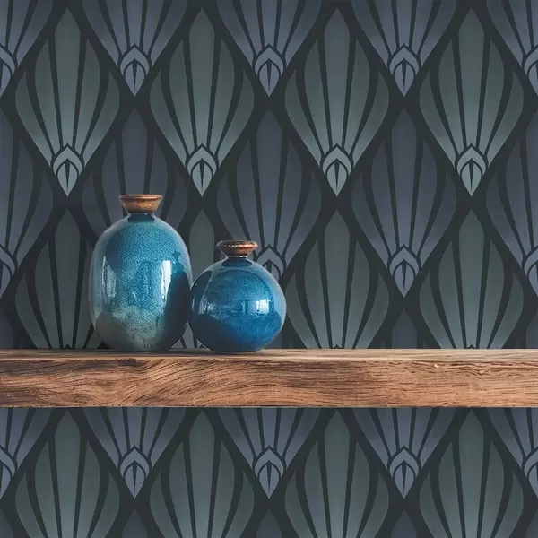 Шпалери Прохолодний синьо-сірий арт-деко з віялоподібними формами Nr. a01064v3