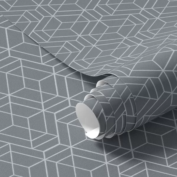 Шпалери Сірий фон з білими тривимірними кубами у вигляді сітки Nr. a01067v2