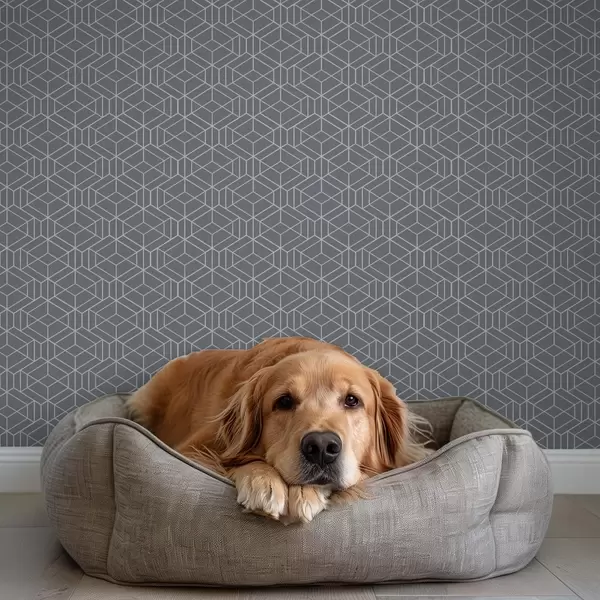 Шпалери Сірий фон з білими тривимірними кубами у вигляді сітки Nr. a01067v2