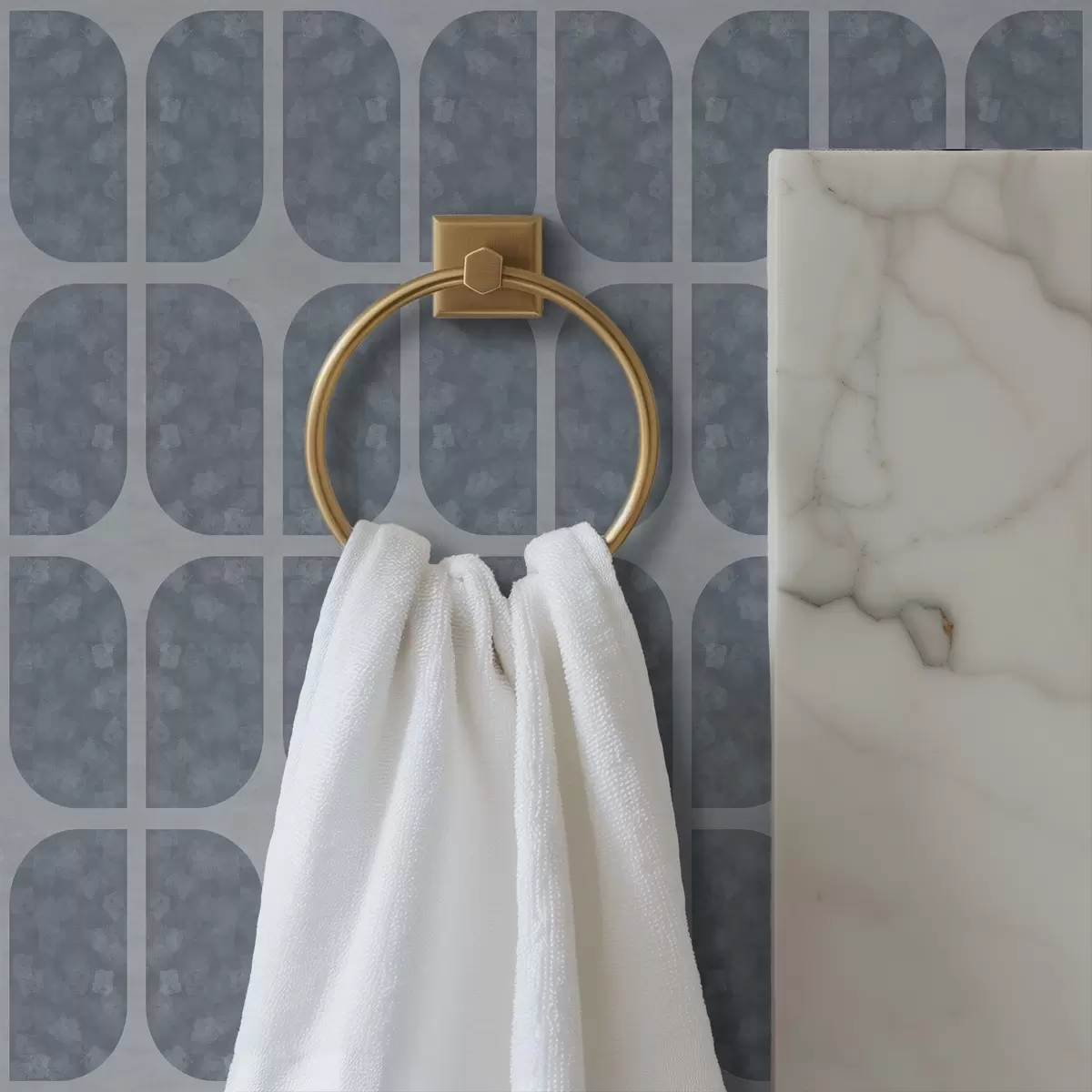 Шпалери Сіра мозаїка з прямокутними арками та м'якою текстурою Nr. a01068