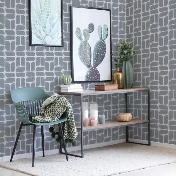 Шпалери Сіра мозаїка, що чергує округлі та прямокутні форми Nr. a01069