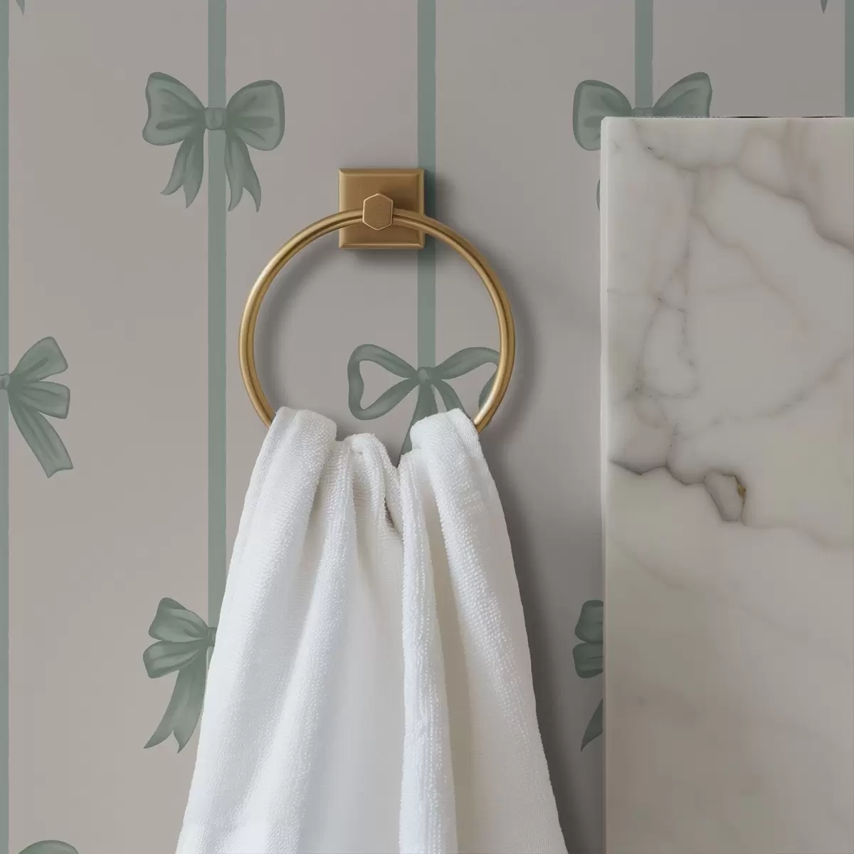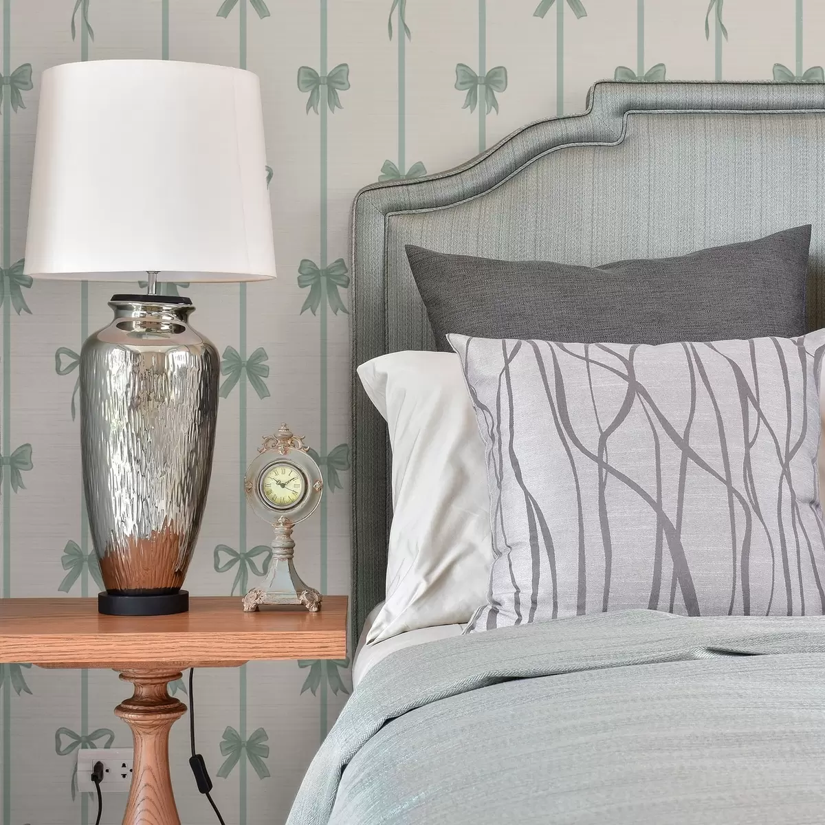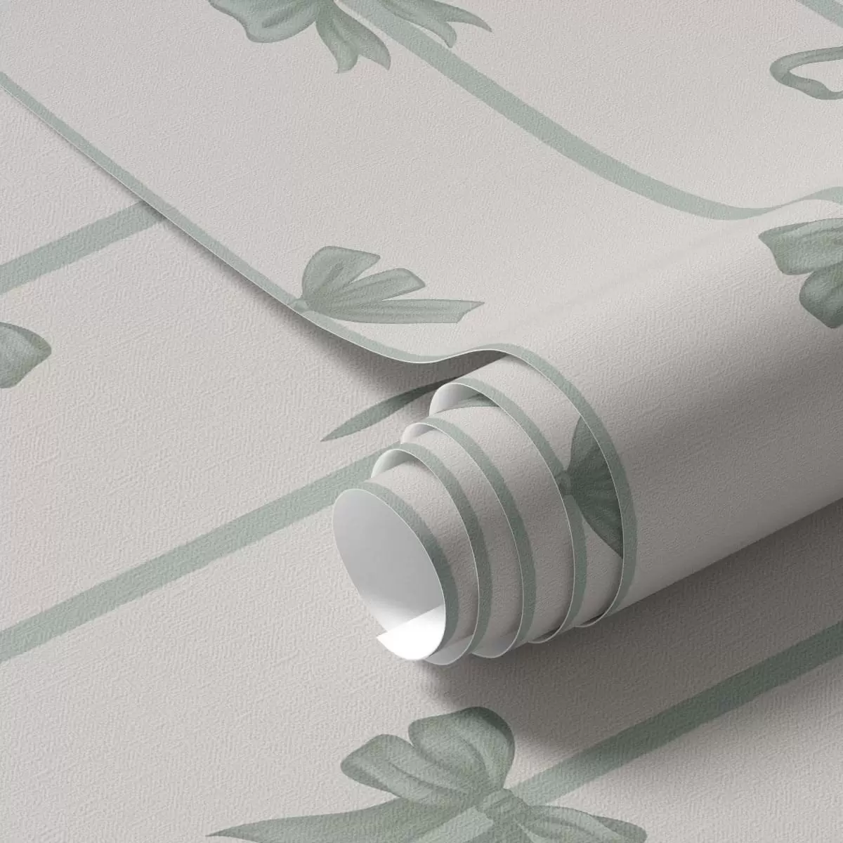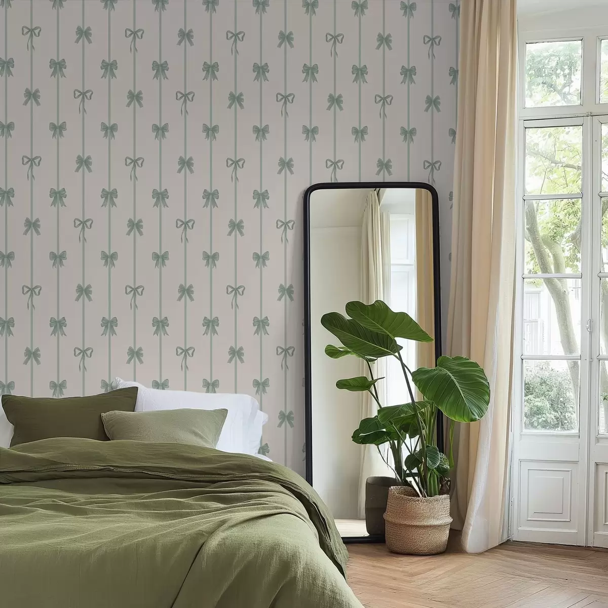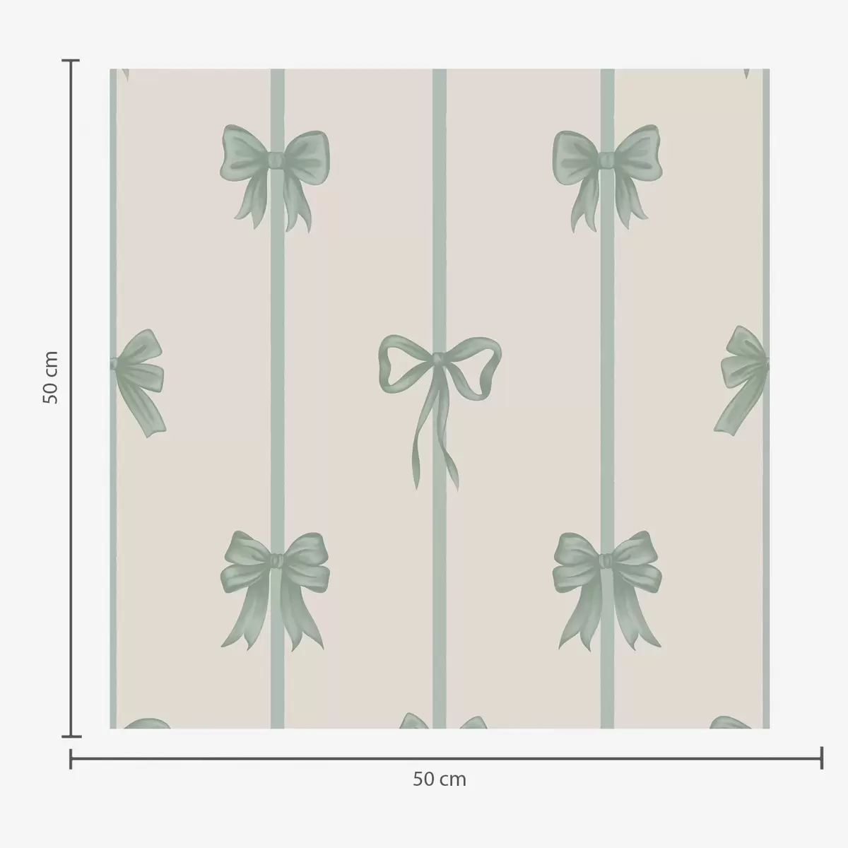 Шпалери Зелені бантики зі стрічками на бежевому тлі Nr. a01074v1