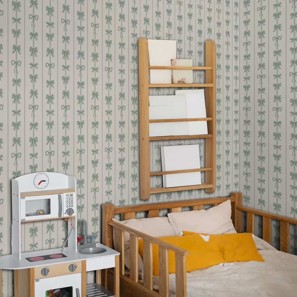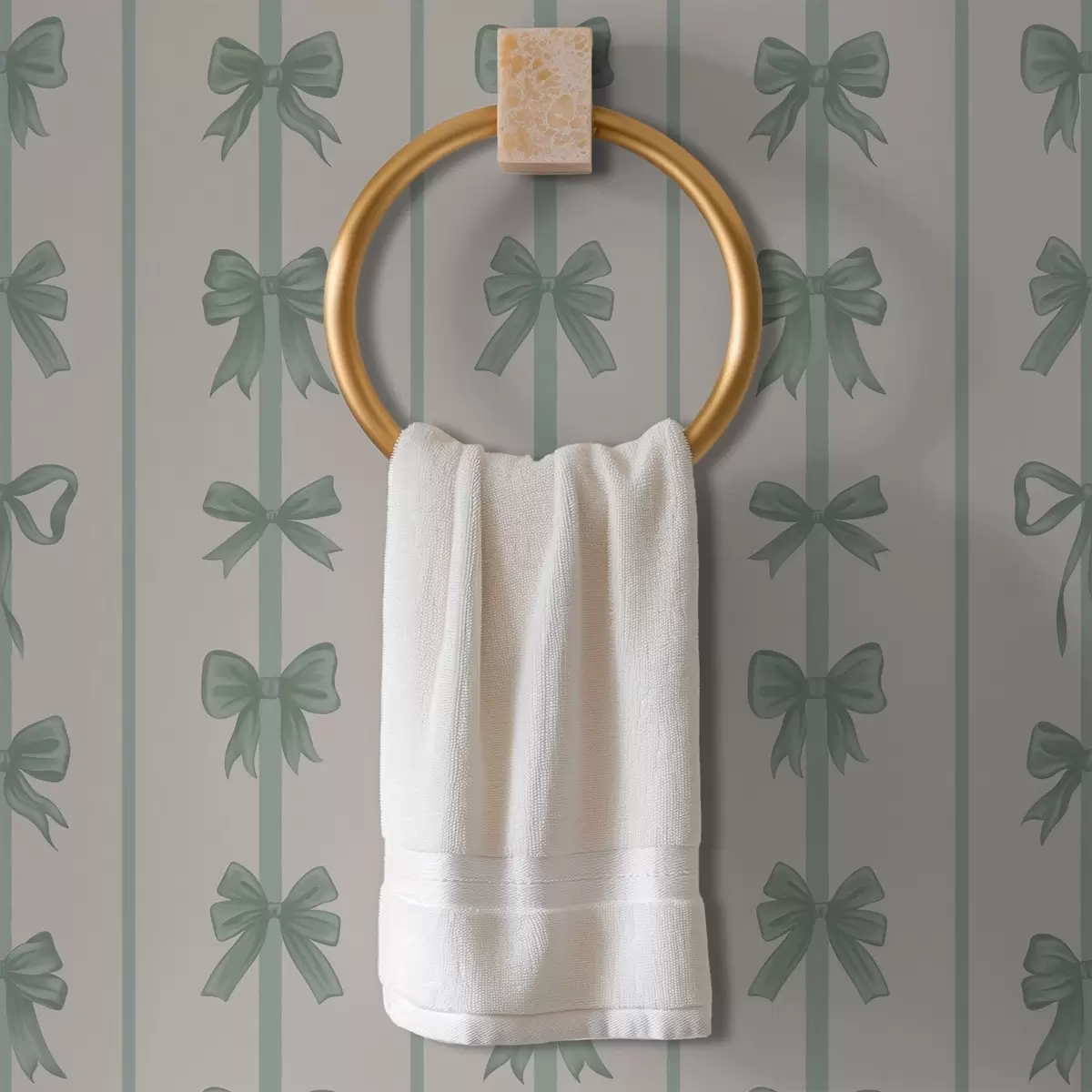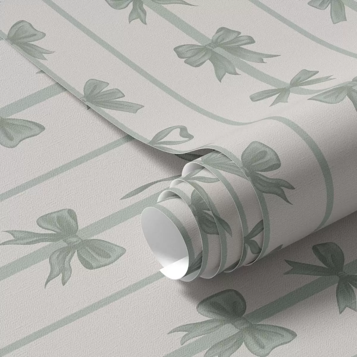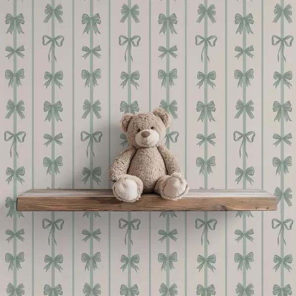 Шпалери Зелені бантики у смужку на бежевому тлі Nr. a01075v1