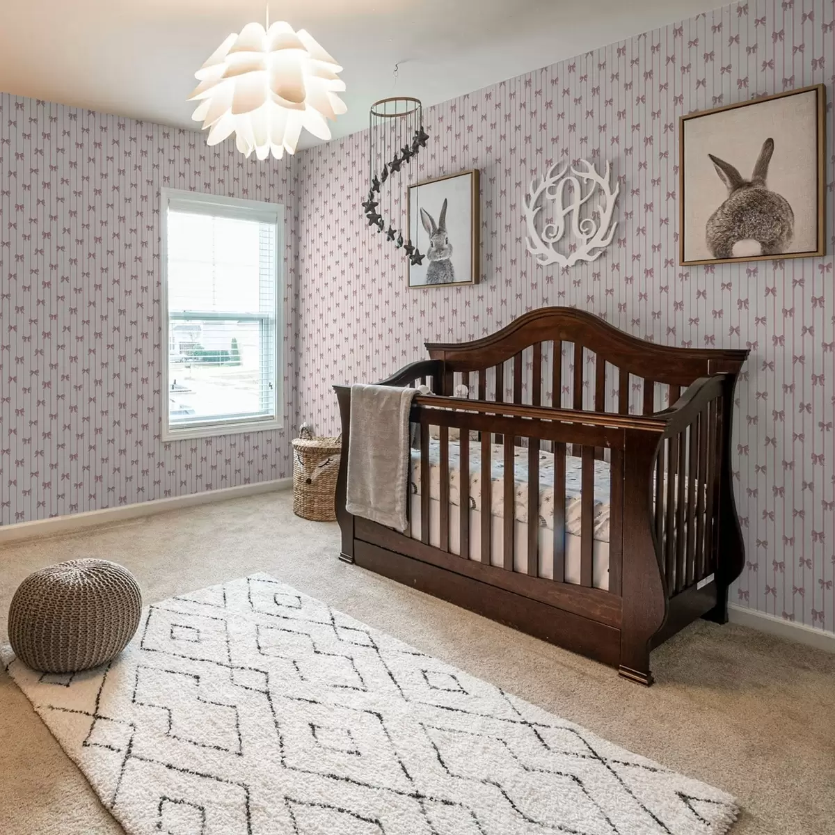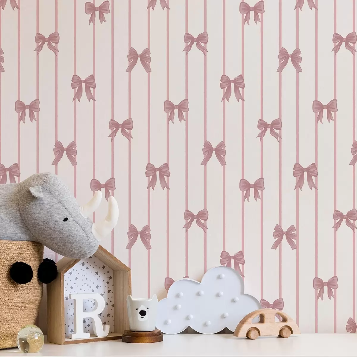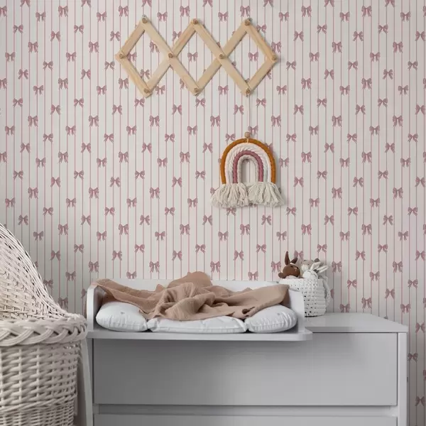 Шпалери Маленькі рожеві бантики у вертикальну смужку Nr. a01076