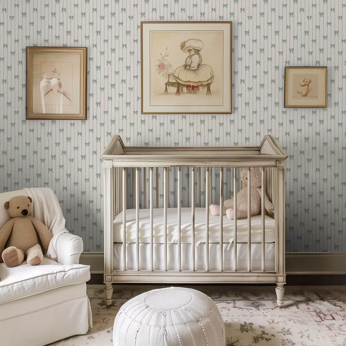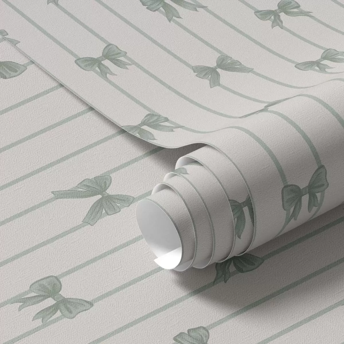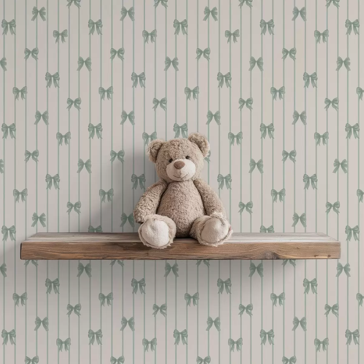 Шпалери Маленькі зелені бантики у смужку на бежевому тлі Nr. a01076v2