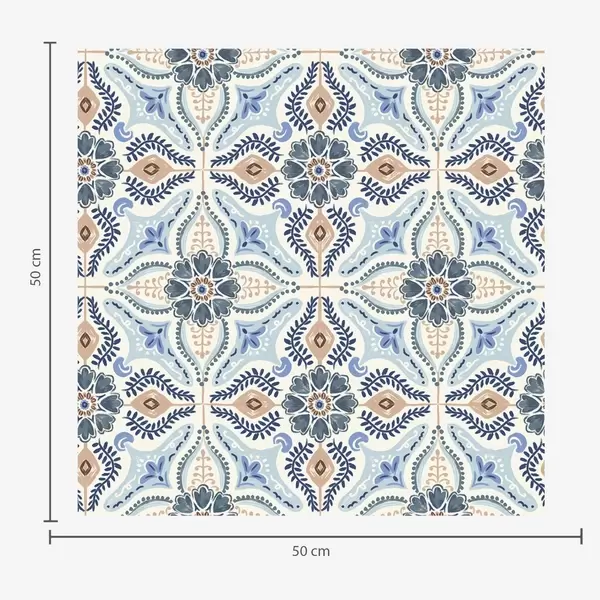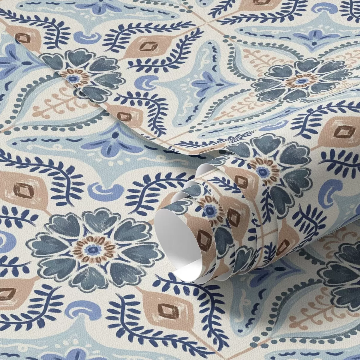 Шпалери Синьо-бежевий орнамент у стилі плитки, намальований аквареллю Nr. a01085