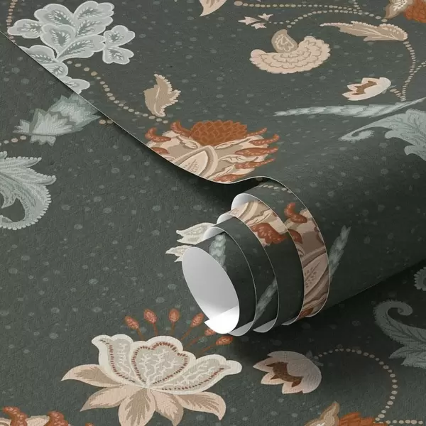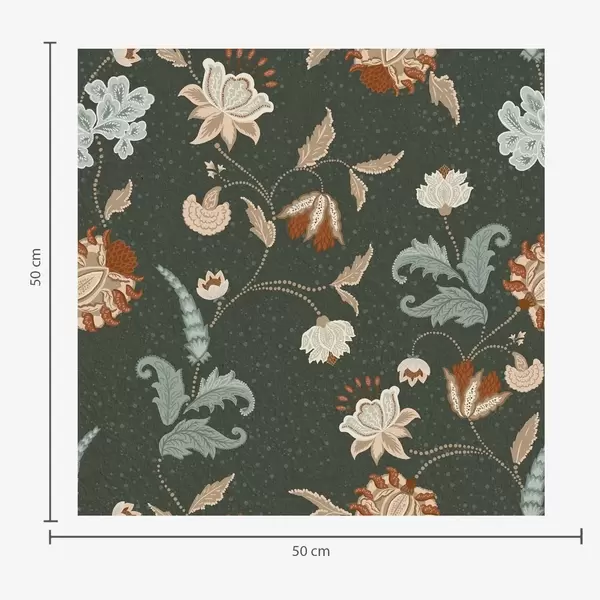 Шпалери Темно-зелений фон з декоративними квітами та листям Nr. a01086
